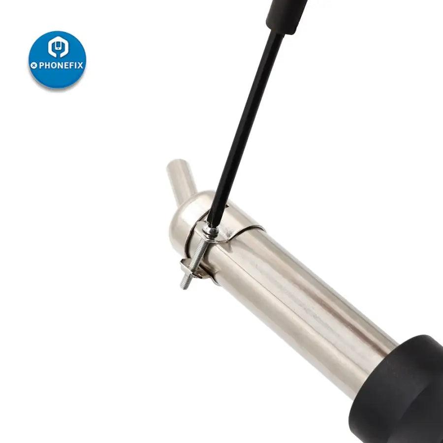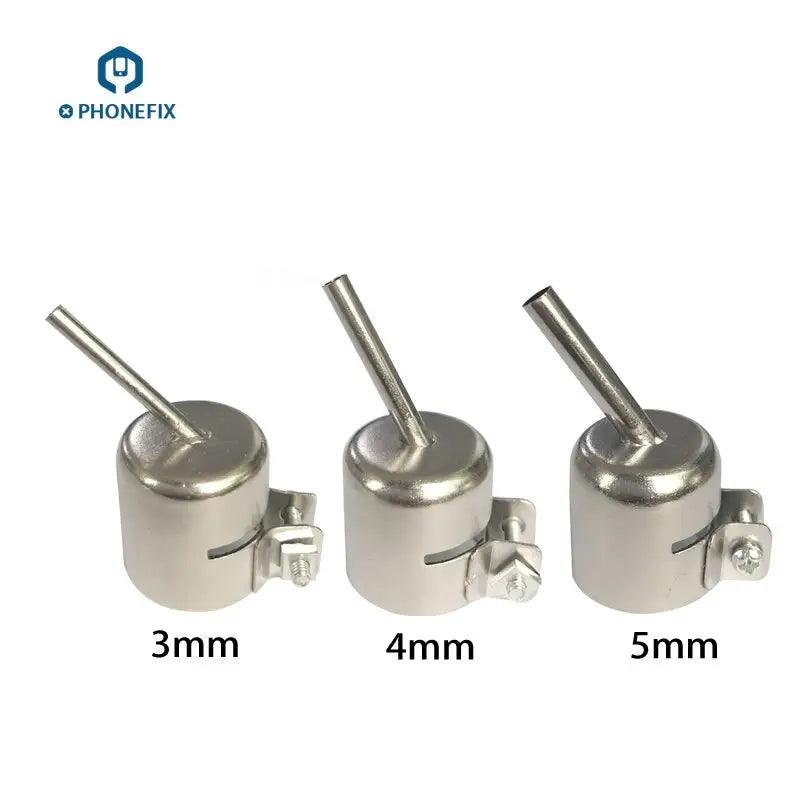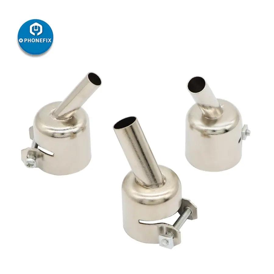 45 Degree Heat Gun Nozzle for 850 Series Hot Air Soldering Station, Replaceable 3 4 5 7 8 10 mm 45 Degree Curved Angle Nozzle Sleeve for 850 Hot Air Soldering Station, Nozzle are 22mm, Hot Air Gun Nozzle compatible with 850, 852, 858 and 878 series BGA Rework Station. customized microscope Curved Angle Heat Gun Nozzle for cell phone PCB repair