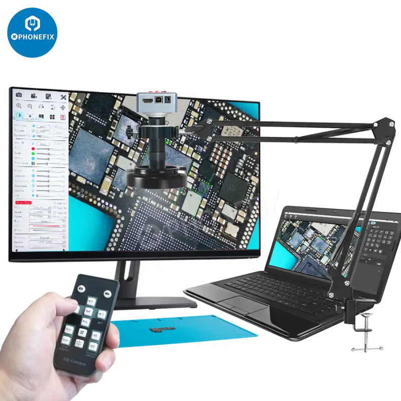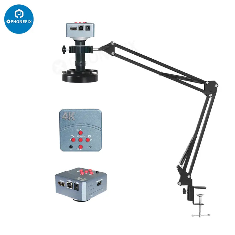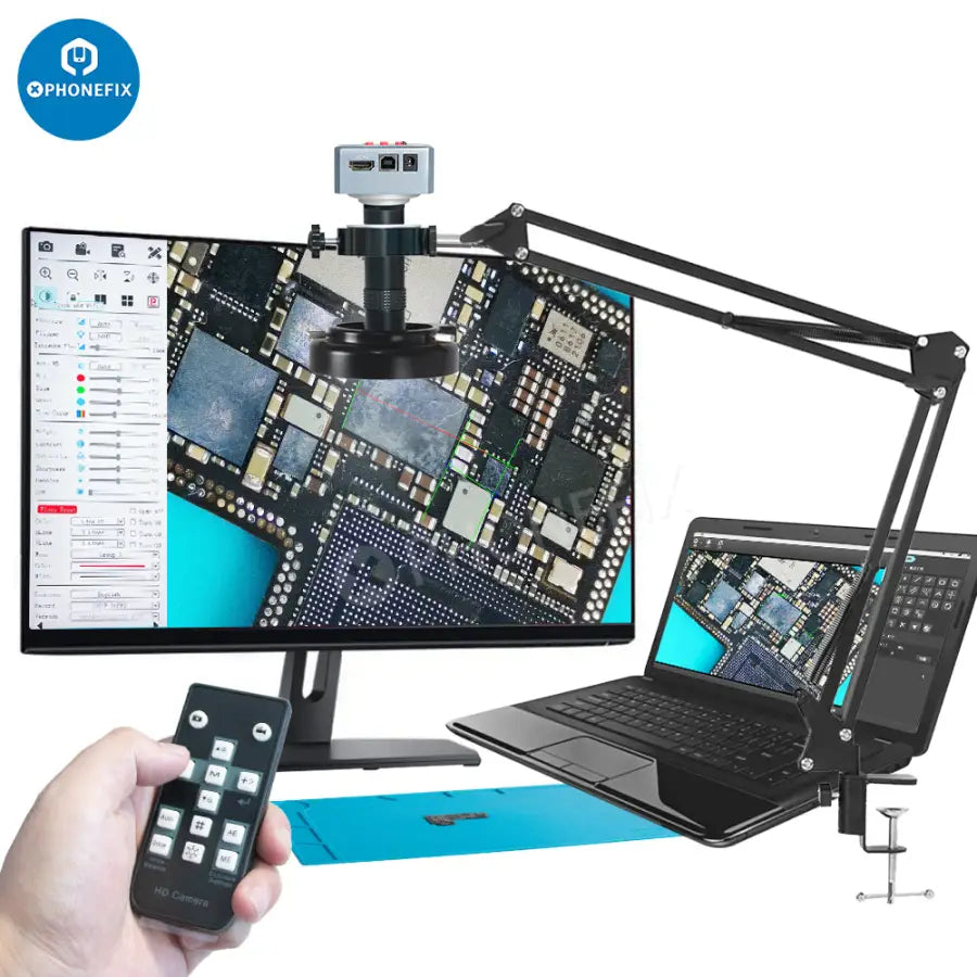 4K 60FPS 1/2" 1080P HDMI USB Industrial Video Digital Microscope Camera 130X Zoom C Mount Lens USB-PC Output Resolution 40MM 50MM Cantilever Stand 56 LED Light For Phone PCB Repair Soldering Live Streaming Video Teaching.
