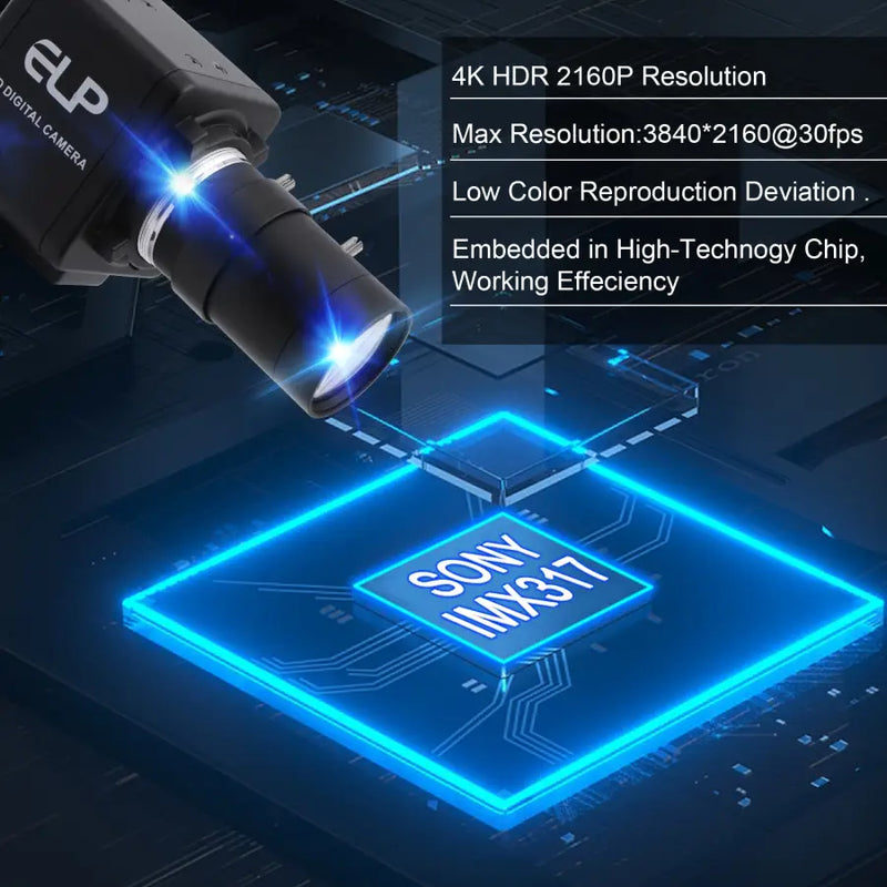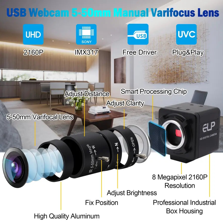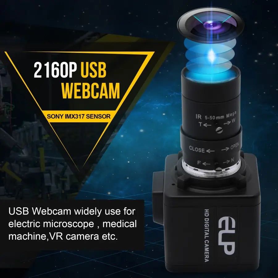 4K SONY USB camera module with 2.8-12mm/5-50mm varifocal lens, IMX317 USB Webcam High frame rate 3840x2160 Mjpeg 30fps UVC Plug and Play