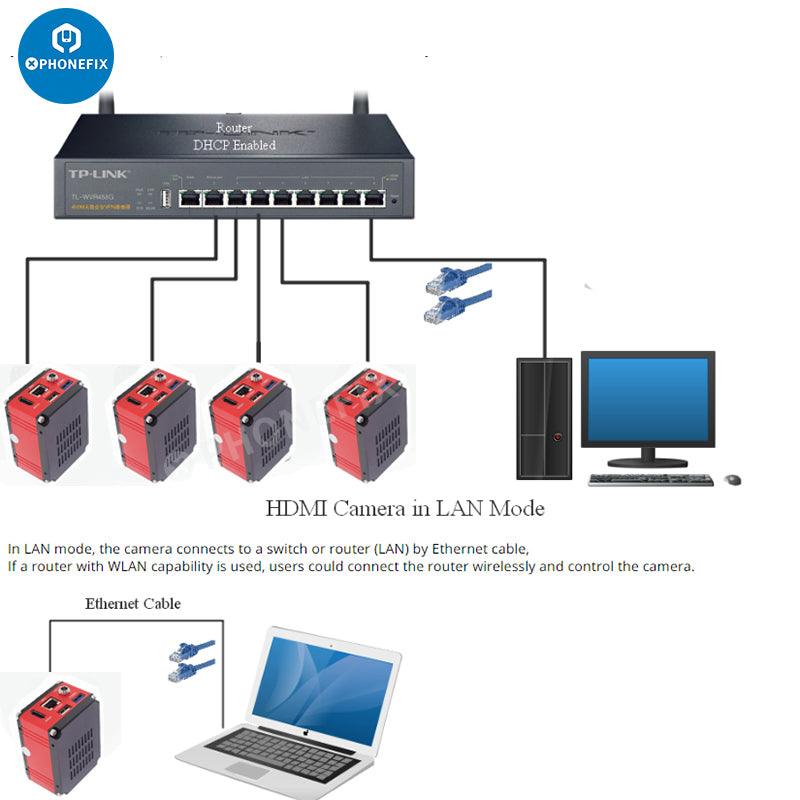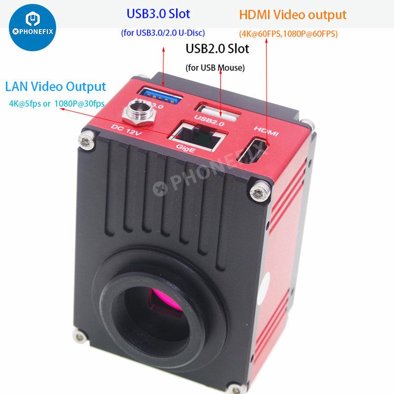 4K @60FPS UHD 1080P HDMI LAN FHD industry microscope digital video camera. It enables real-time HDMI transmission to a display and includes a Gigabit Ethernet port. It is a reliable and efficient way to transmit HDMI data to a display and observe it via a computer with this 2K camera.
