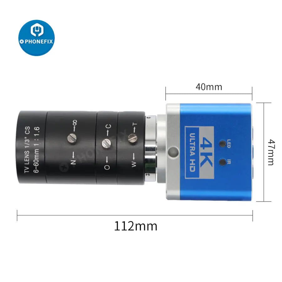 4K Ultra HD USB CMOS HDMI Output industrial Live Digital Camera, with CCD digital detector, Sony IMX377 Sensor, Equipped with 6-60mm 1/3" CS Mount CCTV Lens IR F1.6 Manual Zoom Manual Iris Camera Lens.