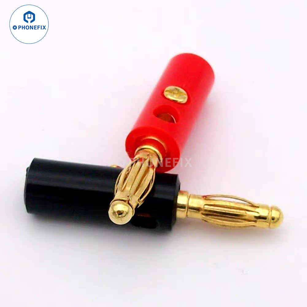 4MM gold plated audio speaker wire cable banana plug connector is mainly used in industrial instruments, teaching instruments, electric power testing, radio modeling, medical instruments, etc. due to its excellent electrical performance and simple assembly method, automobile testing, audio equipment and other fields.