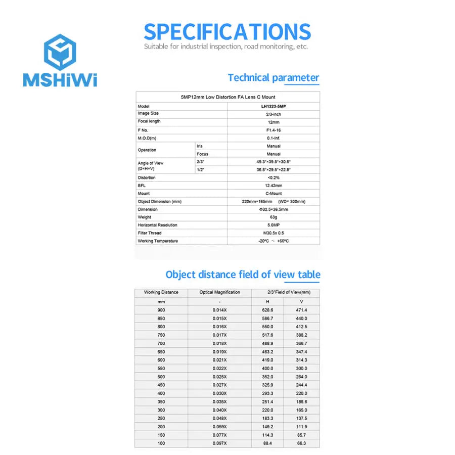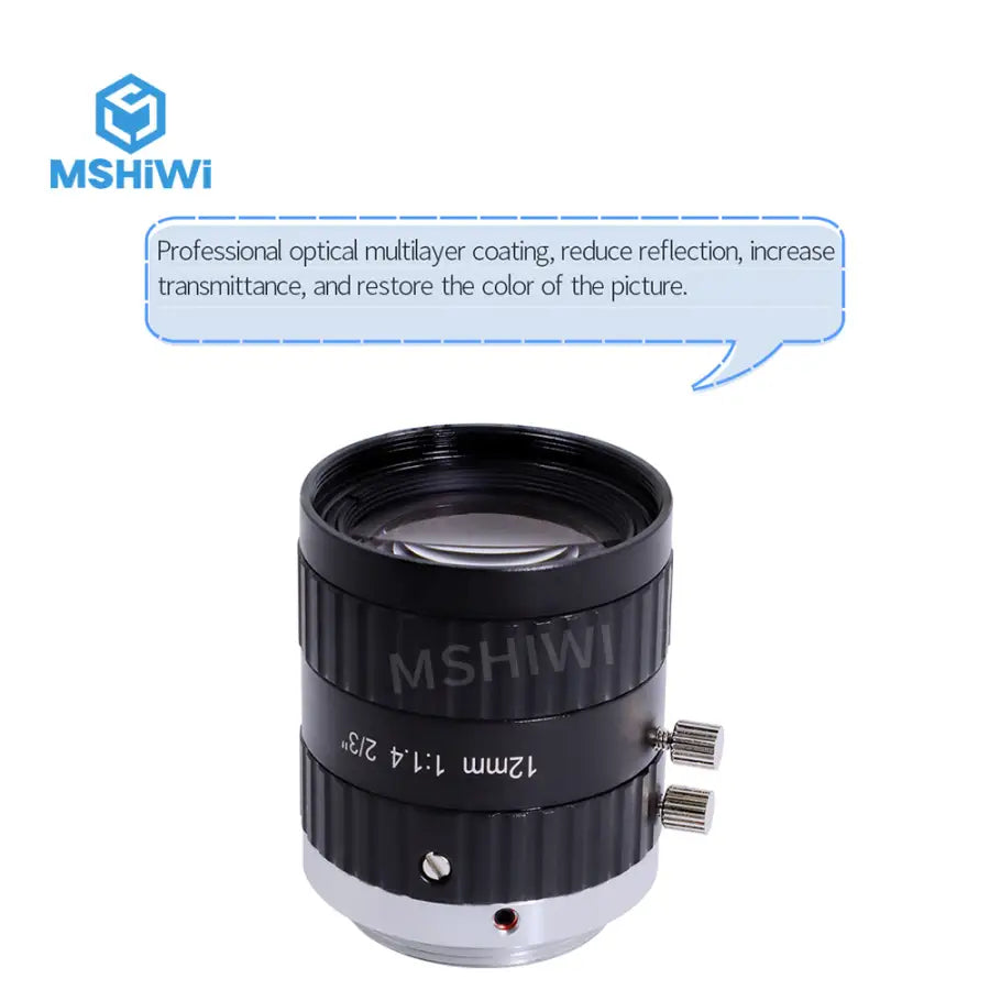 HD CCTV Lens 5.0MP C-mount 12mm Lens low distortion manual Iris Machine Vision Lenses 2/3" F1.4, manual focus ITS camera lens FA lenses, for Vision Inspection/ detection, Visual Localization. Robot Automation, Industrial Automation.