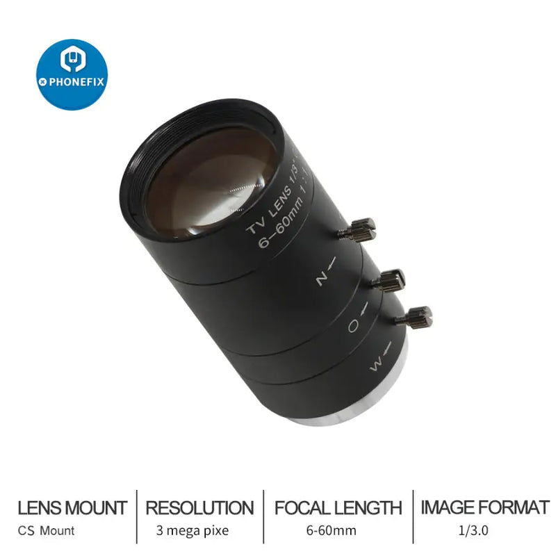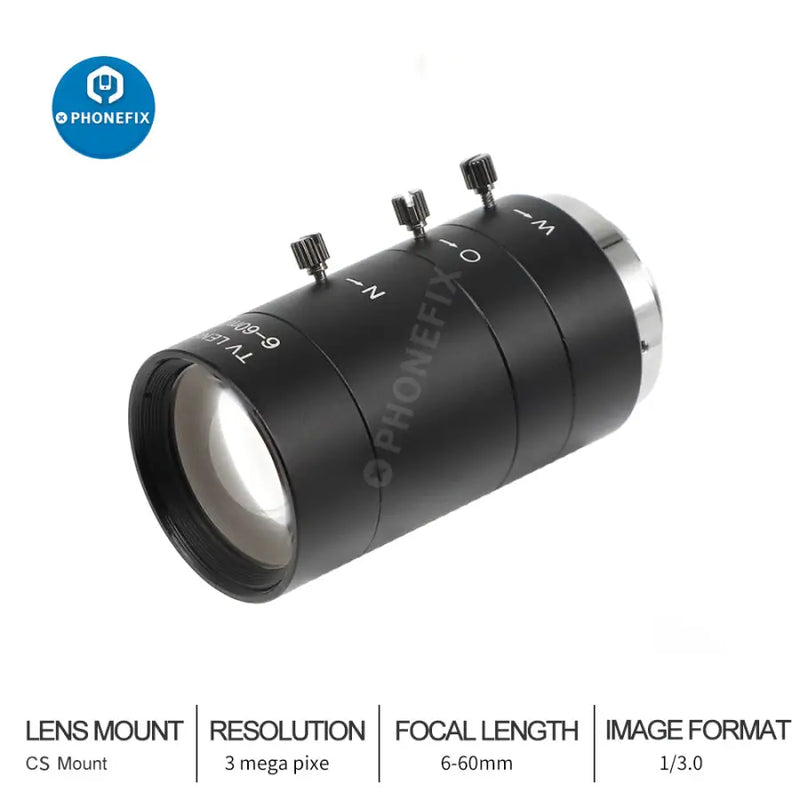 6. Suitable for industrial cameras, surveillance camera, etc. 6~60mm manual zoom, easy to use.