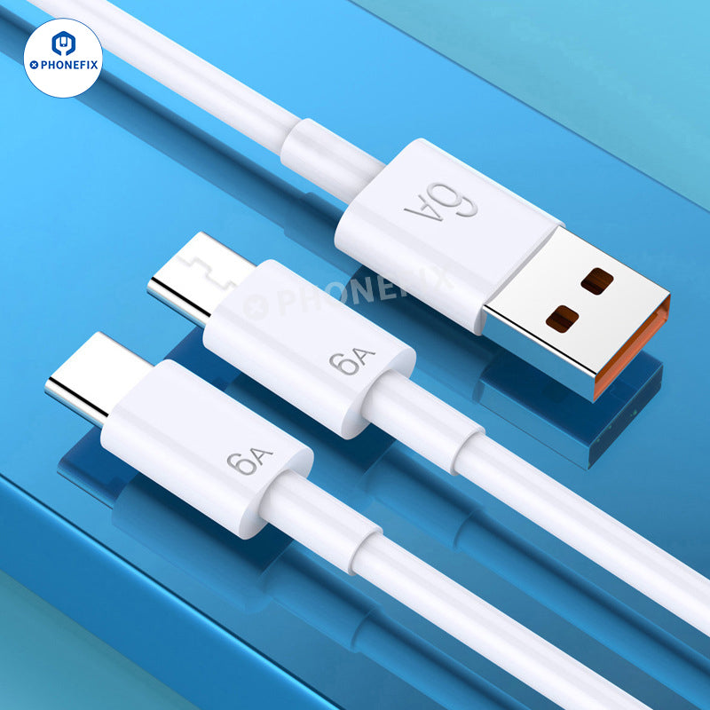 6A Super Fast Charging Data Cable with Micro Type-C Lightning Head for Apple iPhone Android Phones, such as Huawei Samsung Xiaomi Oppo Vivo etc. 6A USB charging cable with data transmission function, safe and fast charging, intelligent protection, compatible with most mobile phones. 120W fast charging data cable is suitable for Type-C micro charging port, supports Huawei fast charging protocol.