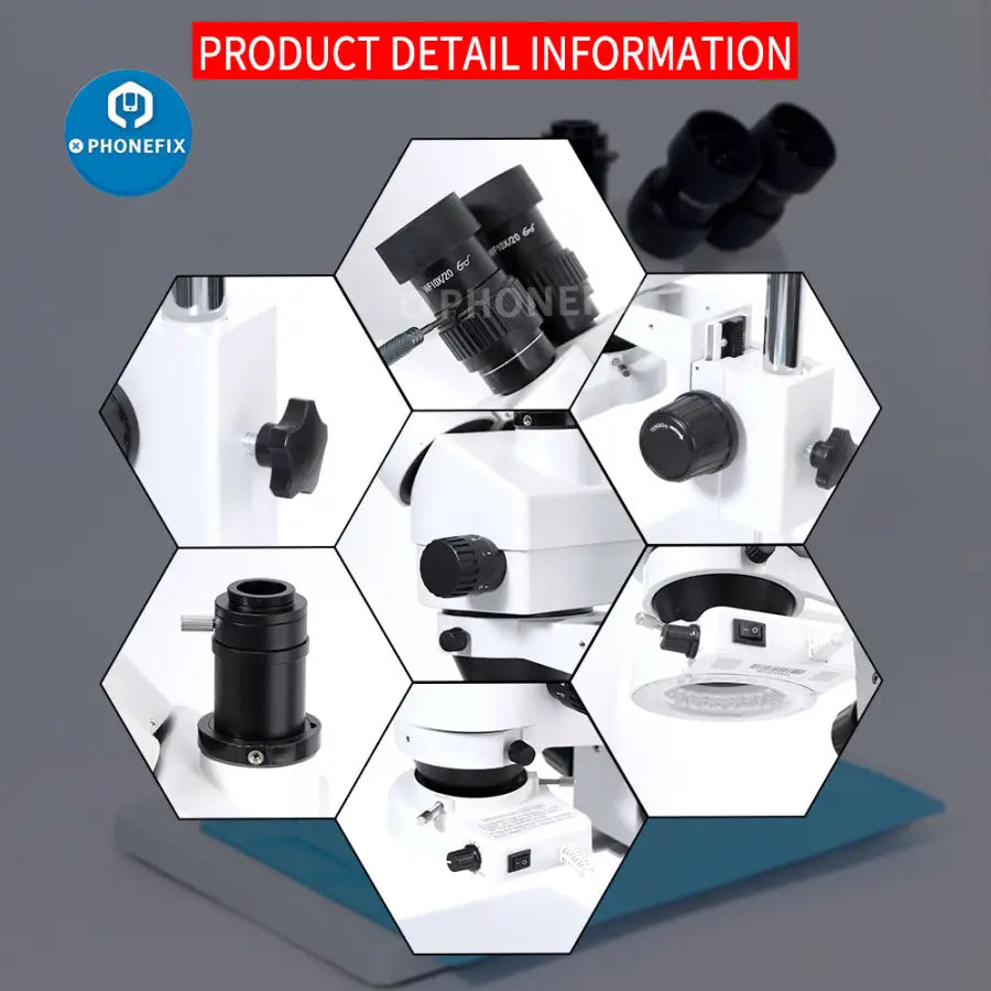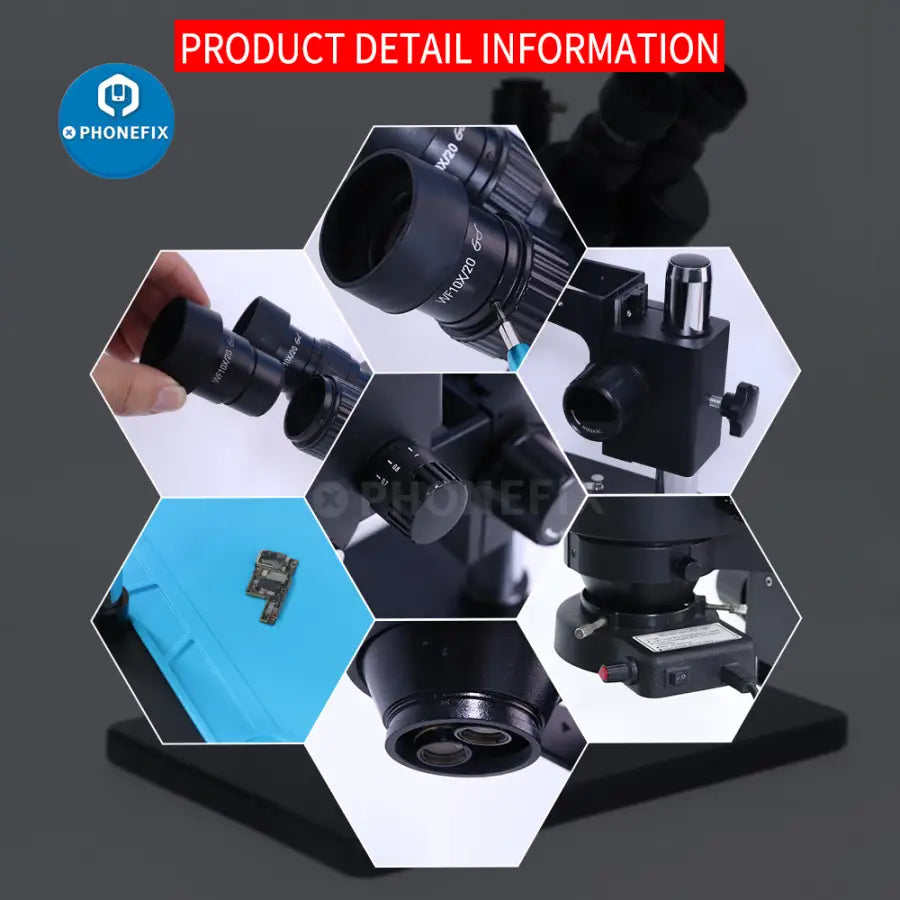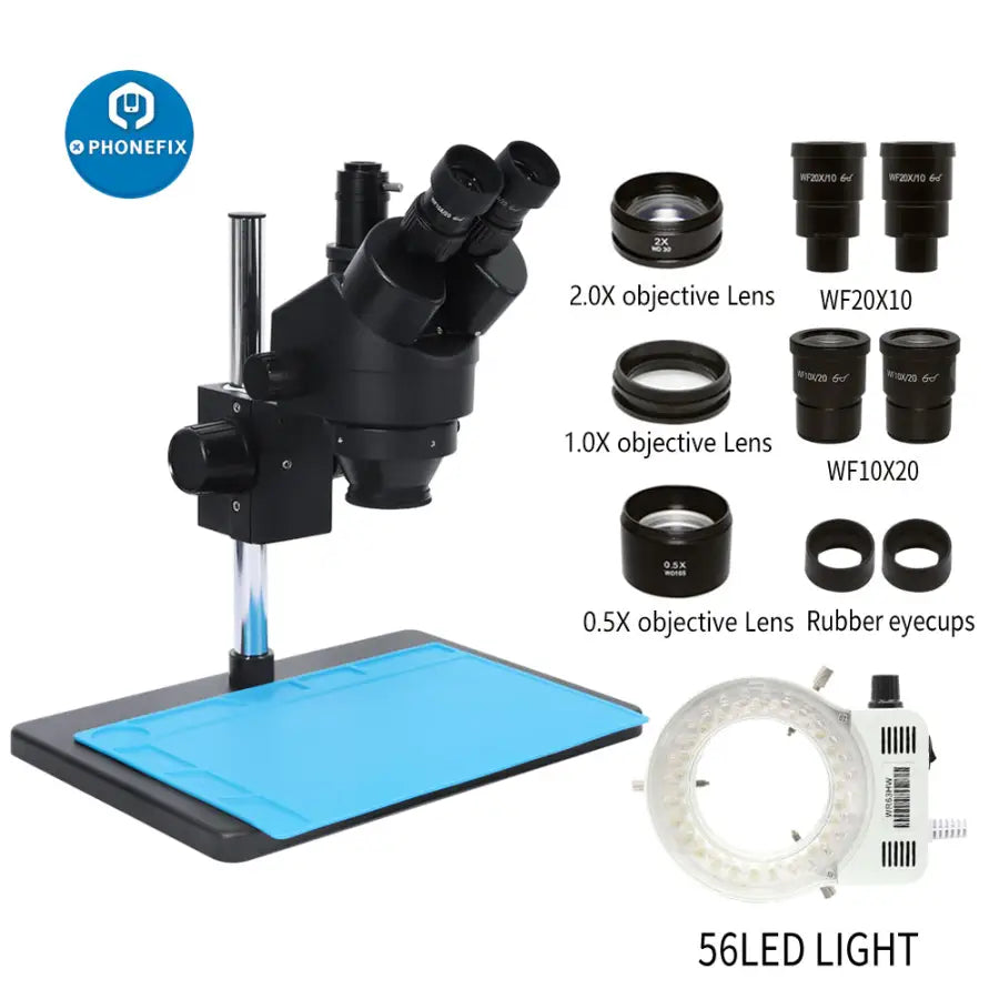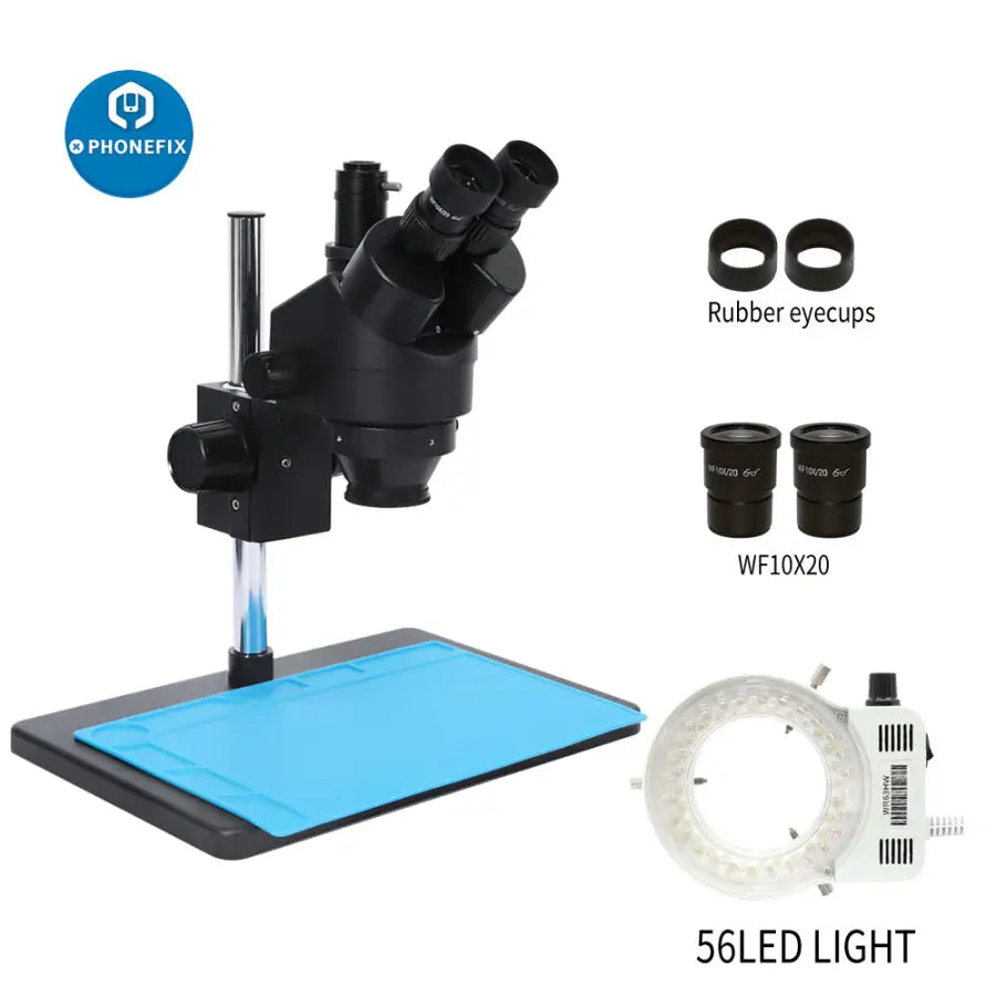 Phone PCB Chip Repair Industrial 7-45X 3.5X-90X Black /White Simul-focal Zoom Trinocular Stereo Microscope With WF10X20mm Eyepieces,7X-45X 3.5X-90X Trinocular Stereo Zoom Big Table Stand Microscope WF20X 0.5X 2.0X Auxiliary Objective Lens
