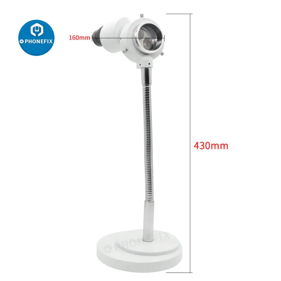 Features: 1. 8X magnification with 95mm (5 1/2") working distance and 25mm field of view. 2. 12" long strong gooseneck arm allows for 360 degree rotation of head and easy height adjustment. 3. Durable metal construction with weighted base for stability. Distance between eyepieces is adjustable for comfortable viewing. 4. Can be upgraded with cameras and/or higher magnification eyepieces and ring lights to improve visibility.