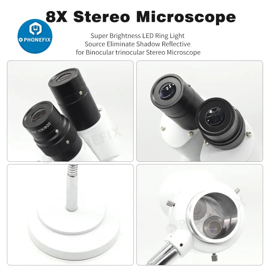 360 Degrees Rotatable 8X Stereo Microscope with LED Light Binocular Stereo Microscope Adjustable Hose for Dentist Oral Soldering PCB Repair Tool RX-6D Gooseneck Illuminator for Dental, Lab, Electronic Repair, Industrial Inspection, Hobbyists and More.