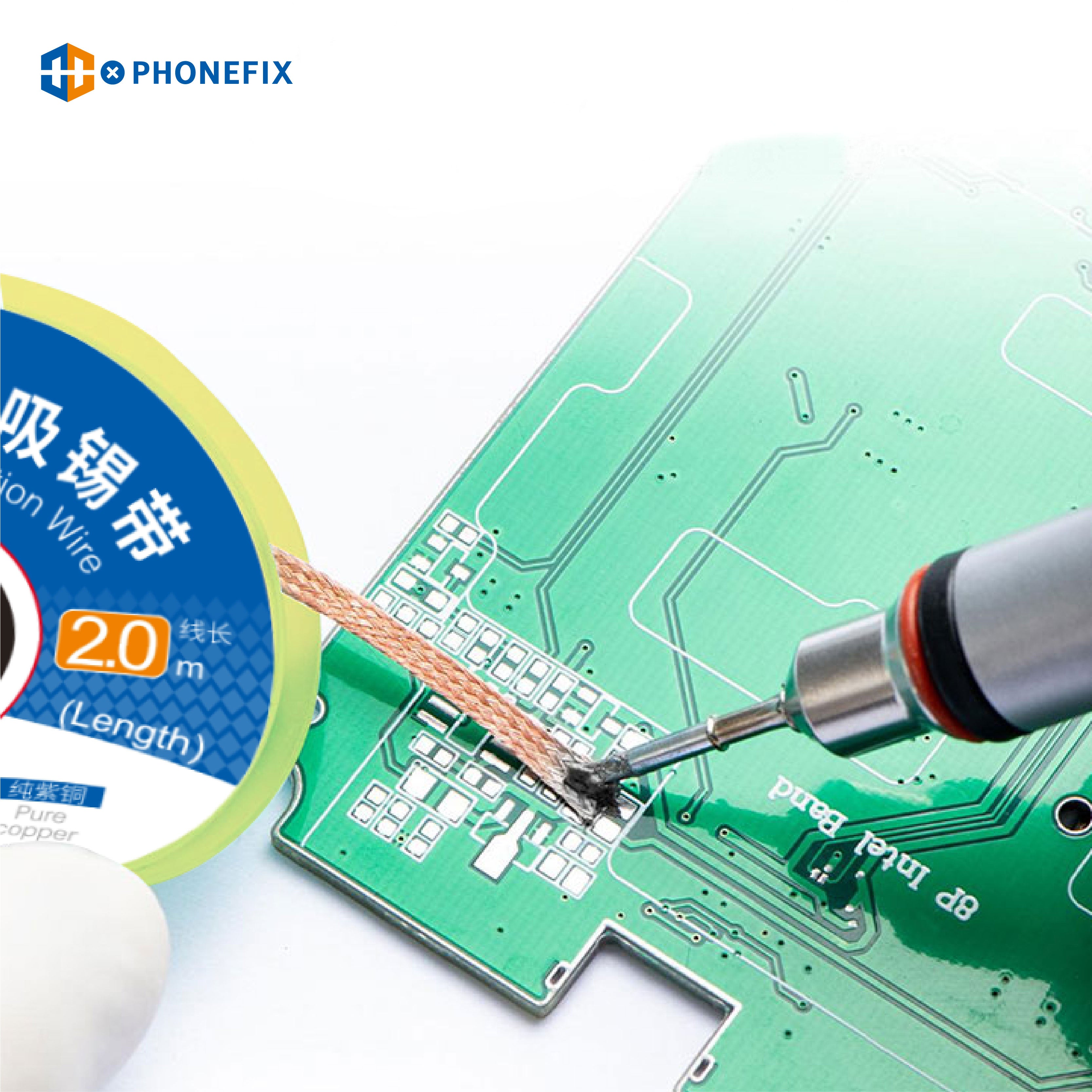 Quickly removes unwanted solder when used with a soldering iron, improve your mobile phone PCB desoldering process.