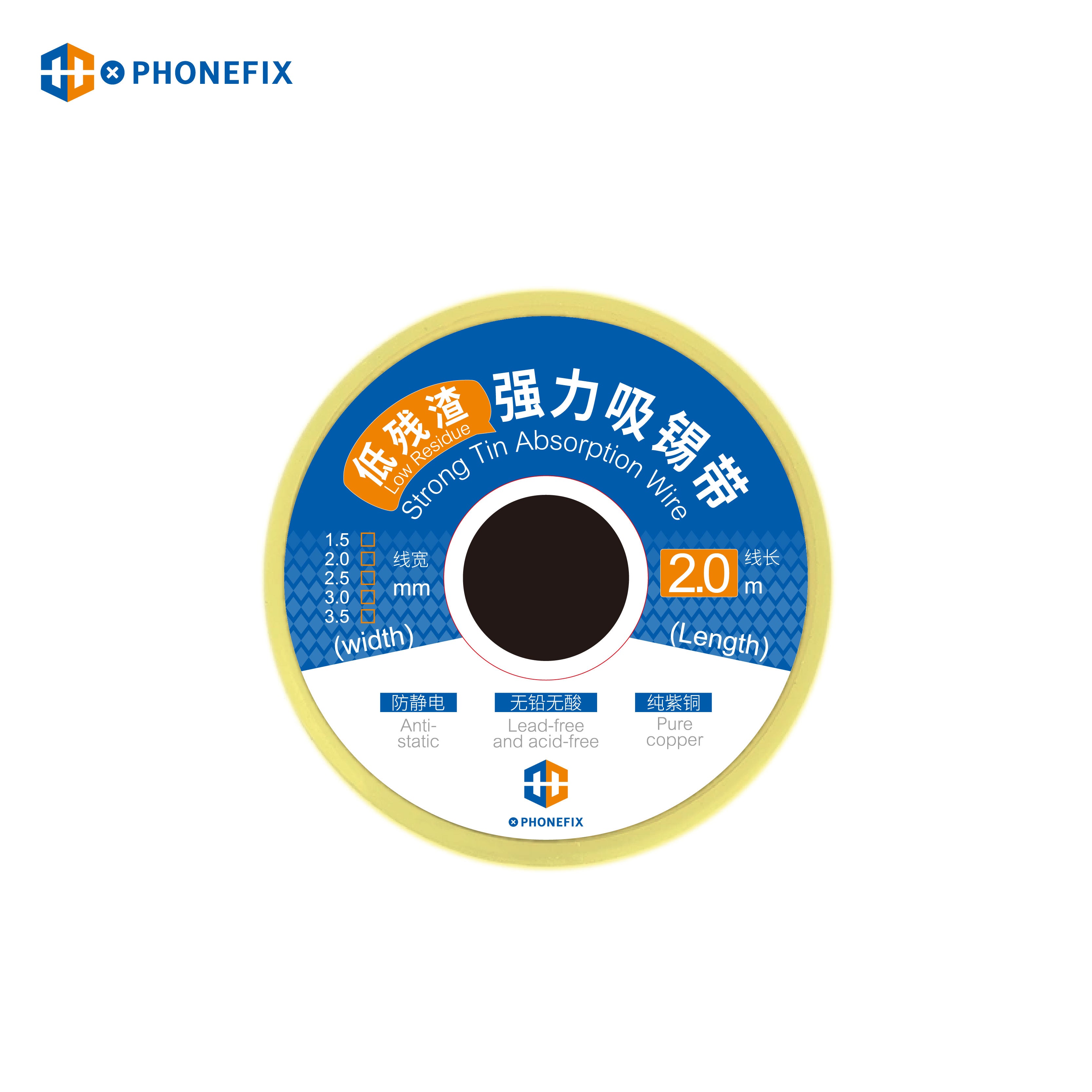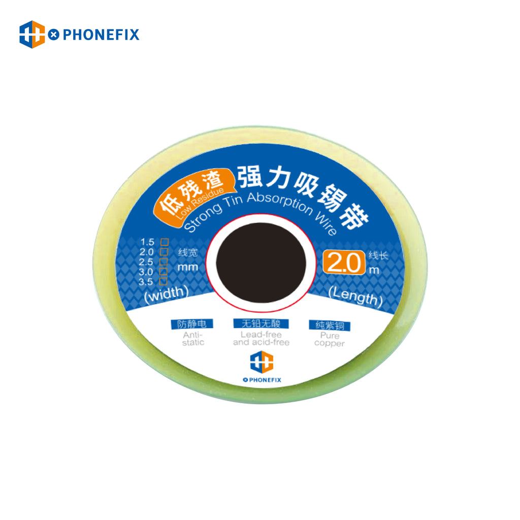 PHONEFIX pure copper low residue BGA desoldering wire for mobile phone motherboard repair, sucking line BGA tin absorbtion line, absorption wire soldering accessory assistant for removes unwanted solder quickly, desoldering wire solder wick except for the tin absorbing excess solder.