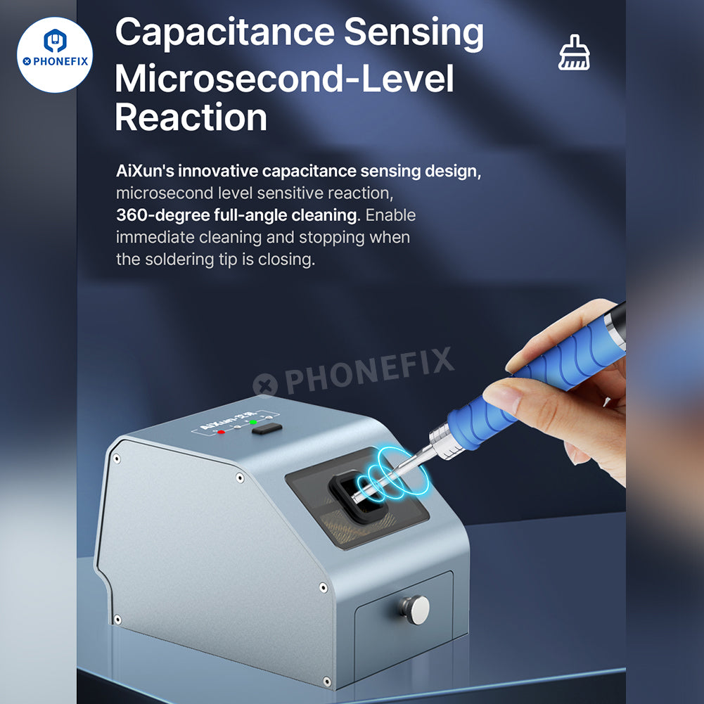 1. AiXun's innovative capacitive sensing design, microsecond-level sensitive response, 360-degree full-angle cleaning, and immediate cleaning and stop when the soldering iron tip is closed.