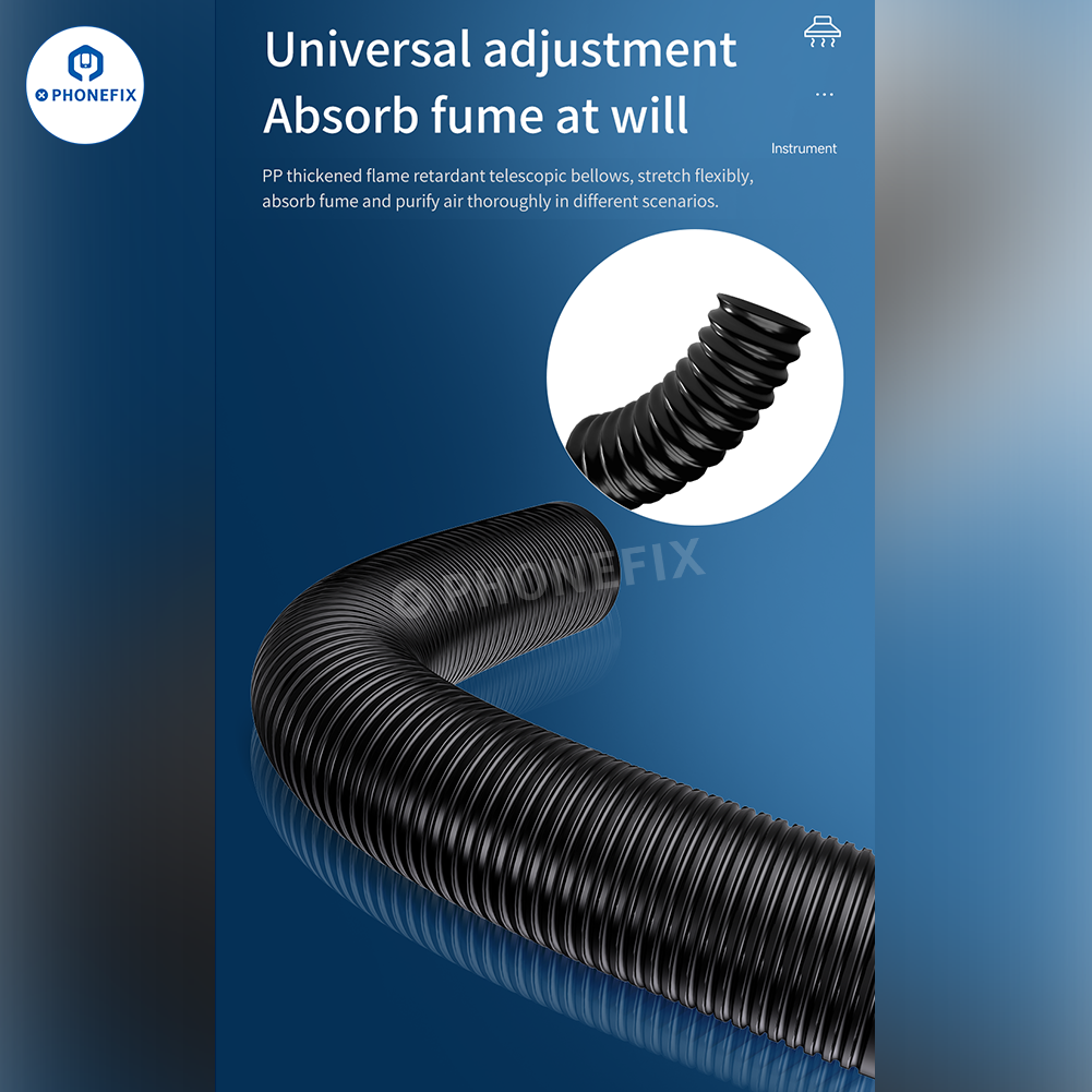 Flexible Fume Absorption: Flame-retardant PP telescopic hose allows for adjustable positioning, efficiently capturing fumes from different angles.