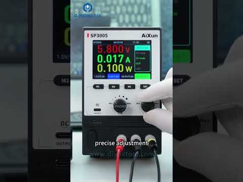 AiXun SP300 150W CNC Programmable DC Power Supply 30V 5A Adjustable 4-Digit Display Shows Voltage and Current for Mobile Phone Repair. Ultra-low noise ripple, knob and button dual control mode. Type-C 30W fast charging output supports QC/PD protocol. Suitable for mobile phone troubleshooting and repair and daily electronic circuit board detection and repair. AIXUN SP3005 power supply is an ideal choice for audio equipment development, maintenance and debugging, electronic laboratory experiments, and low-noise sensor power supply.