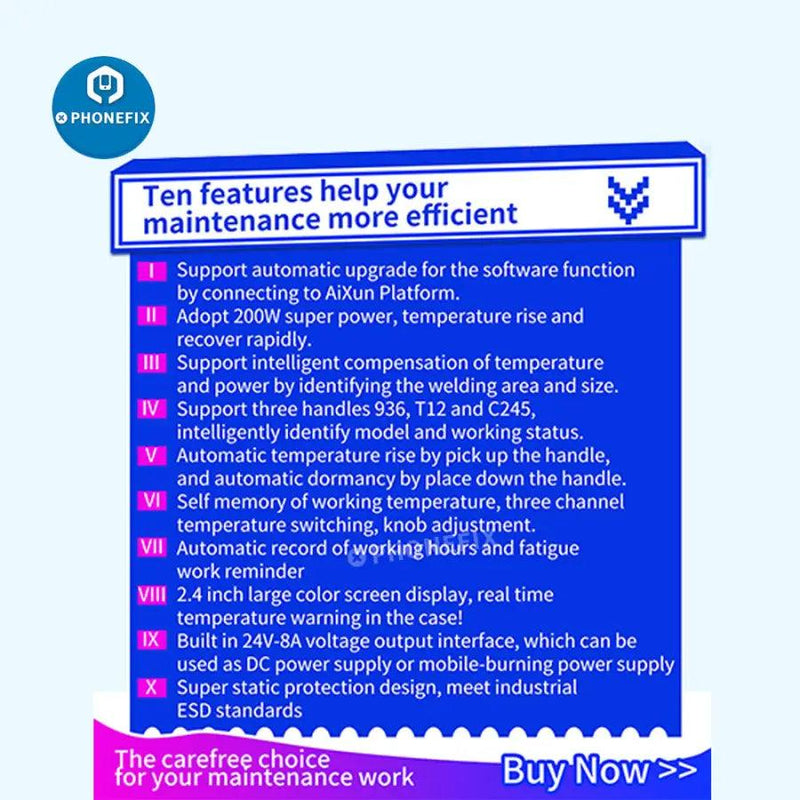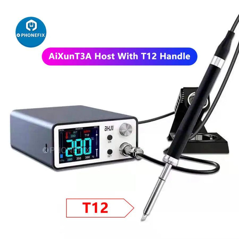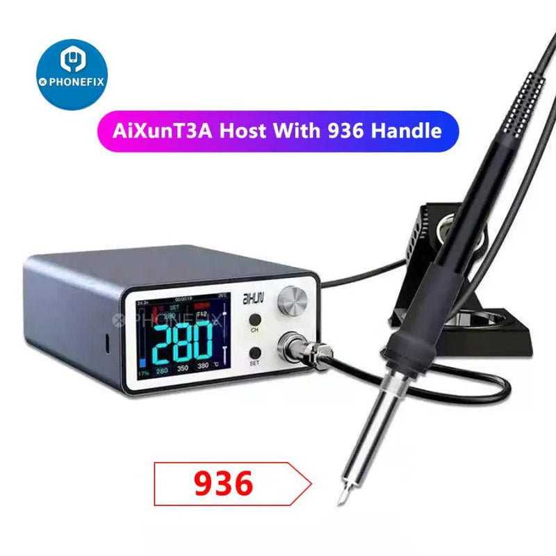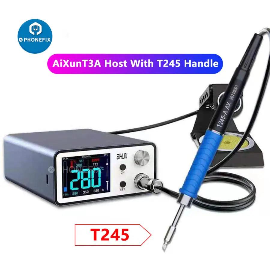 Intelligent AiXunT3A 200W Smart Soldering Station For Phone PCB Repair, AIXUN T3A electric soldering iron station supports 936/T12/T245 soldering handles and iron tips, 100-480℃ temperature adjustable, Auto Dormancy, Temperature memory Function.