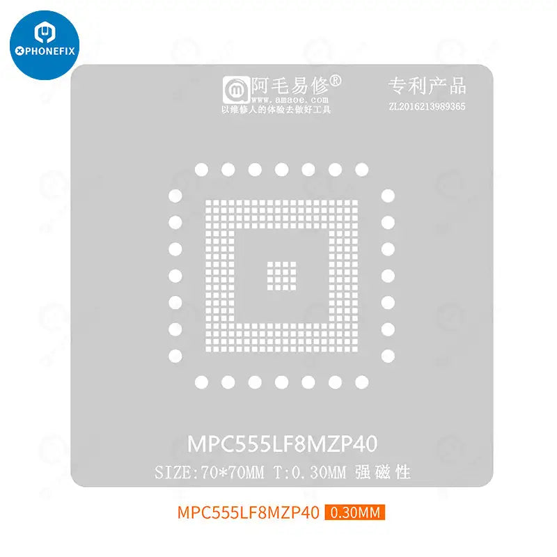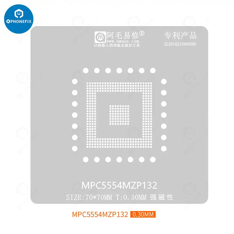 0.3mm Amaoe BGA reballing stencil steel mesh for car computer board BGA chip MPC562MZP56 MPC5554MZP132 MPC555LF8MZP40. AMAOE MPC562MZP56 REV D BGA reballing stencil 70*70mm. Amaoe MPC5554MZP132 reballing stencil 70*70mm. Amaoe MPC555LF8MZP40 reballing stencil 70*70mm.