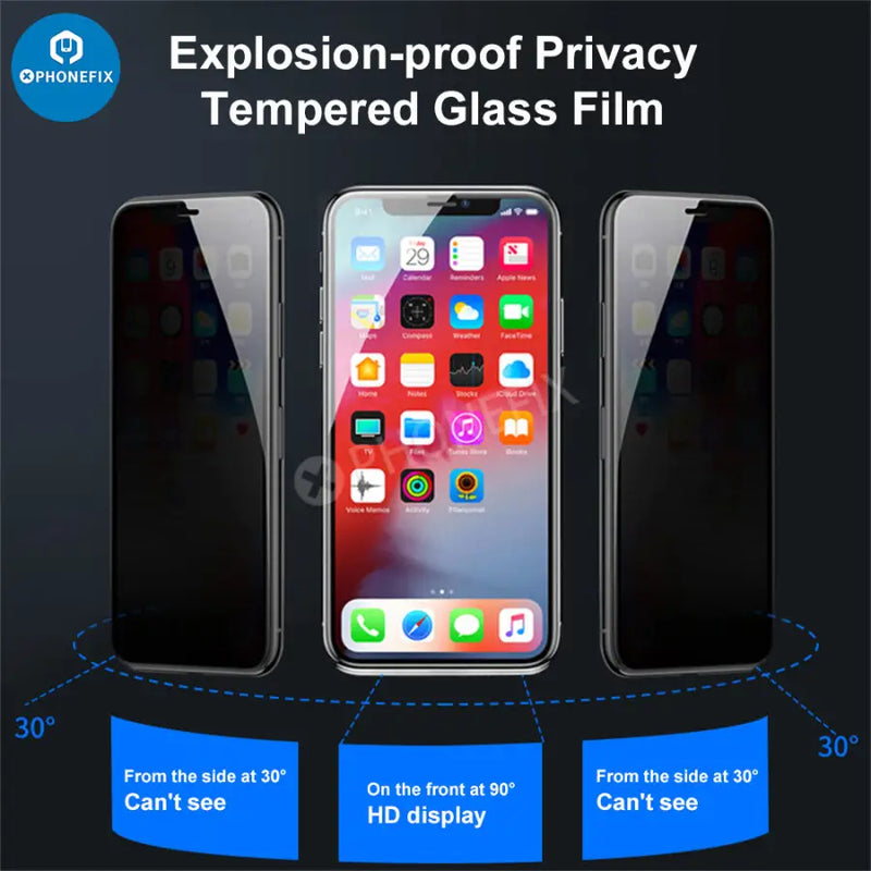 Anti Spy Screen Protector Privacy Film for iPhone 12/13/14/15/16/17 Pro Max. Anti-drop and anti-fingerprint frosted Anti-peeping film for protecting iPhone screen.