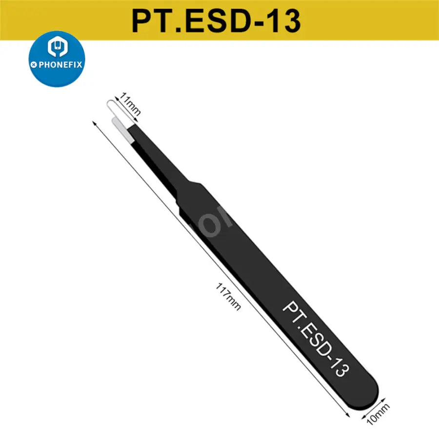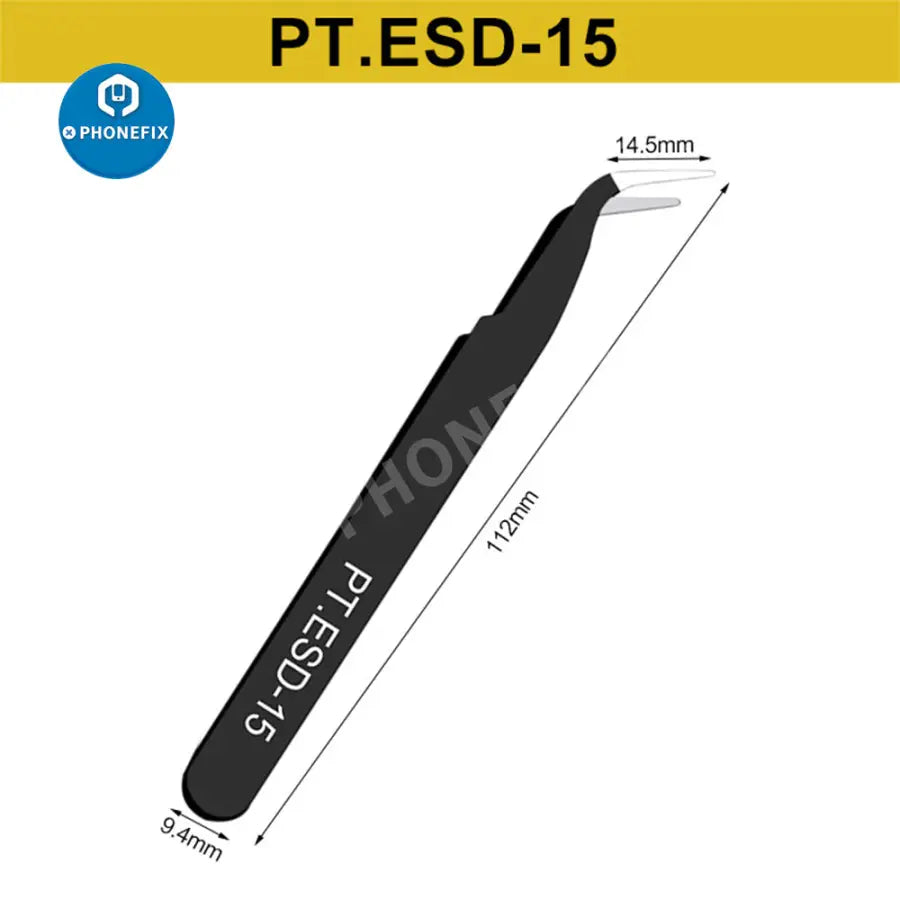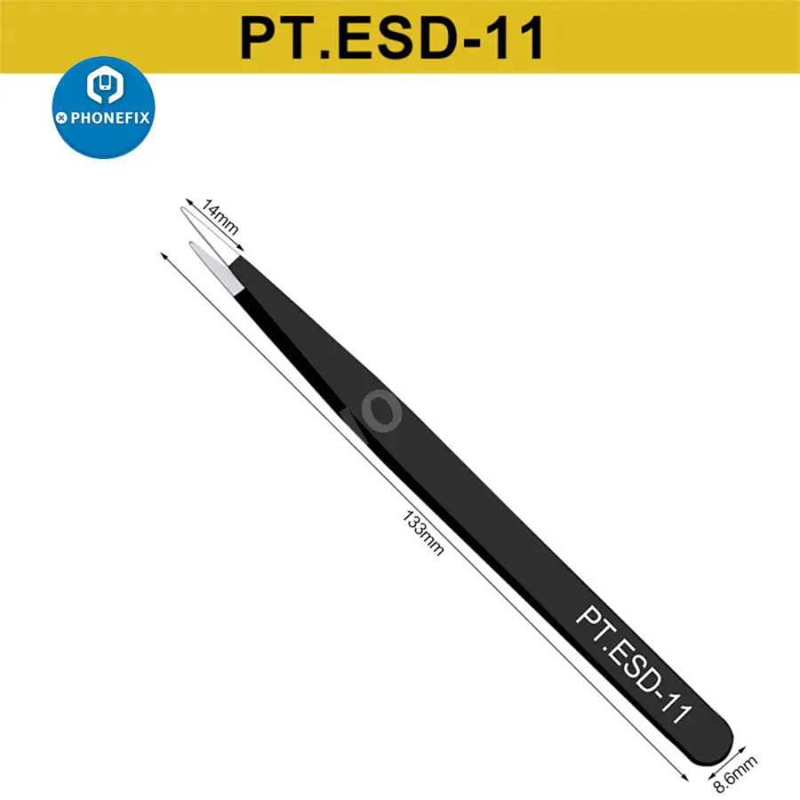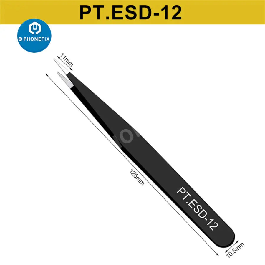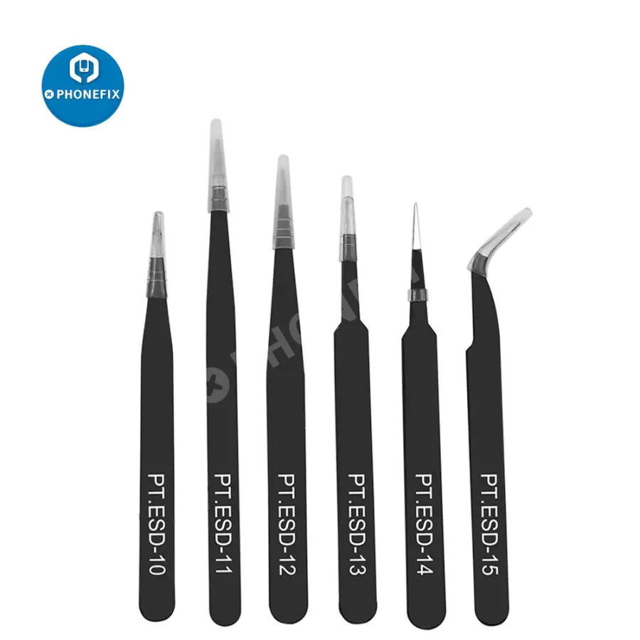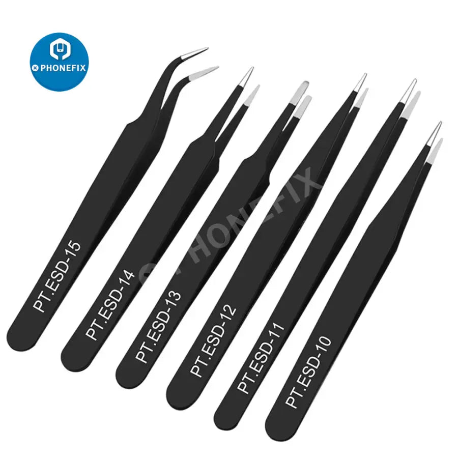 6pcs Anti-static ESD Stainless Steel Tweezers Maintenance Tools Industrial Precision Curved Straight Tweezers Repair Tools