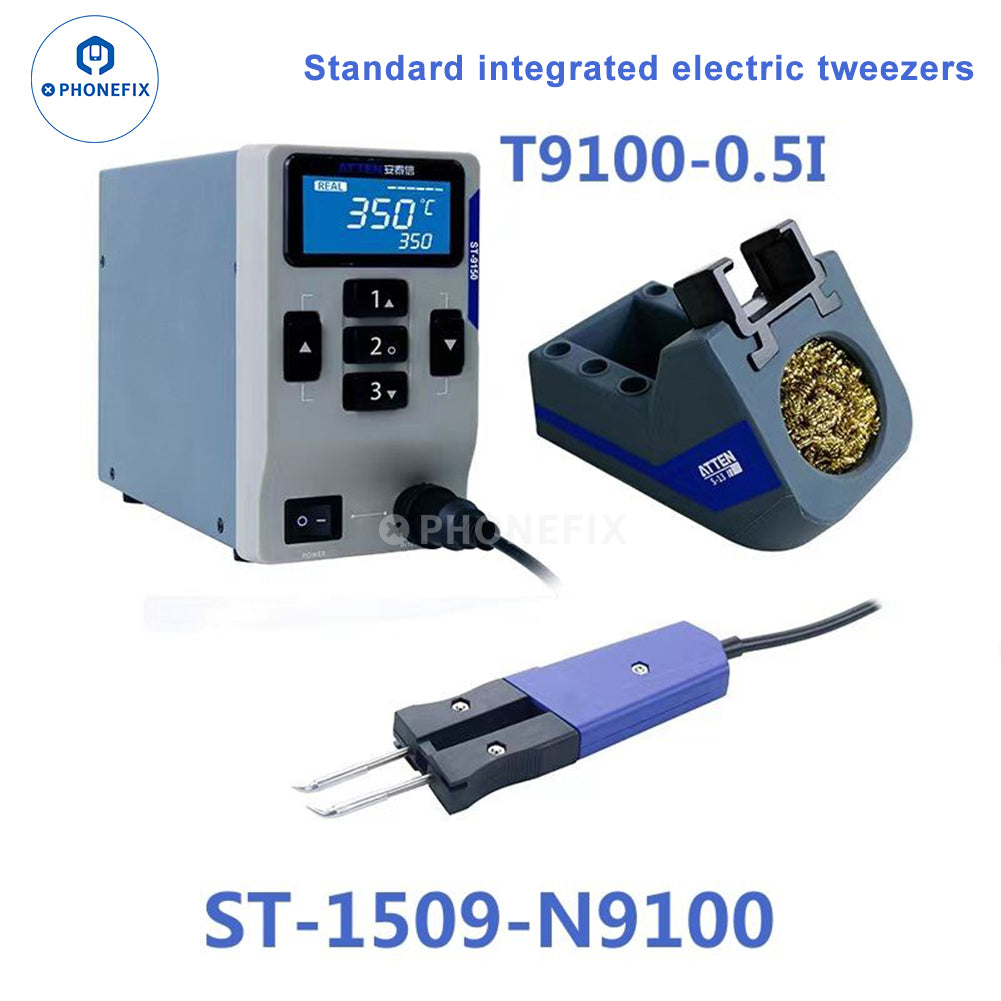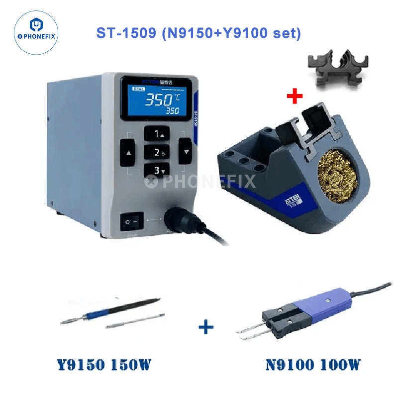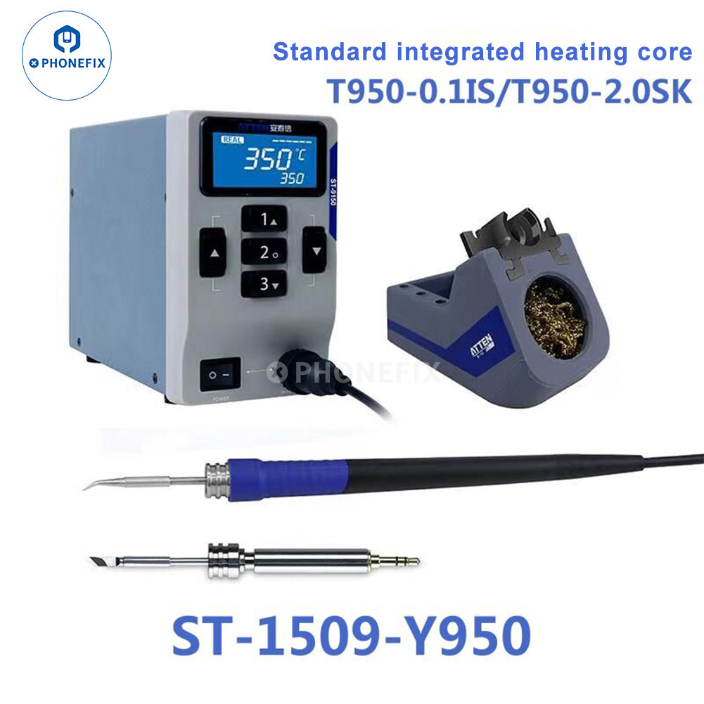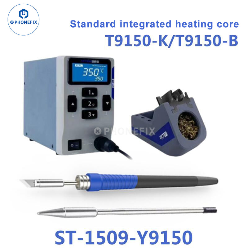 ATTEN ST-1509 9150 150W Digital Soldering Station Compatible With Various Type Of Soldering Tips BGA PCB Desoldering Welding Iron. Atten ST-1509 Soldering Station Compatible with various type of soldering tools for mobile phone motherboard BGA CPU IC soldering repair.