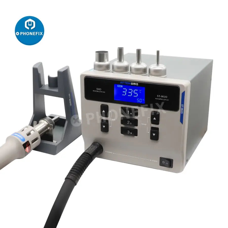 ATTEN ST862D Intelligent digital display rework station For PCB chip soldering repair, 1000W Whirlwind ATTEN ST-862D lead-free hot air gun soldering station, ATTEN ST-862D Hot Air Rework Station 1000W Whirlwind 20L-120L/Min.