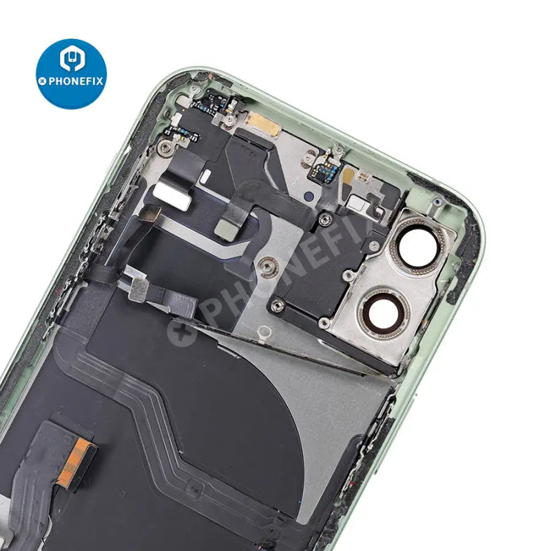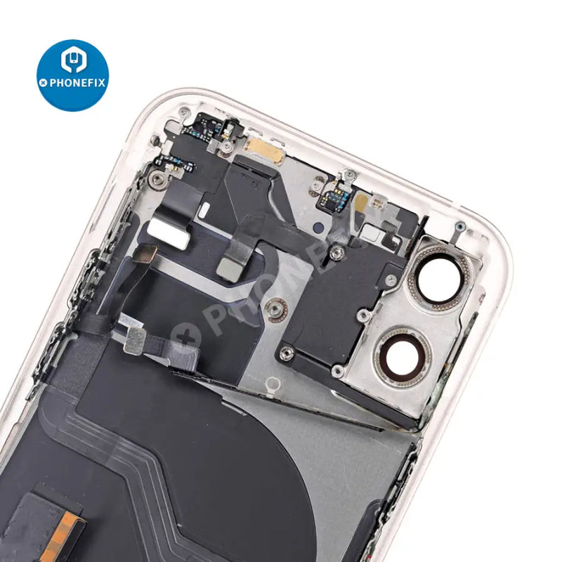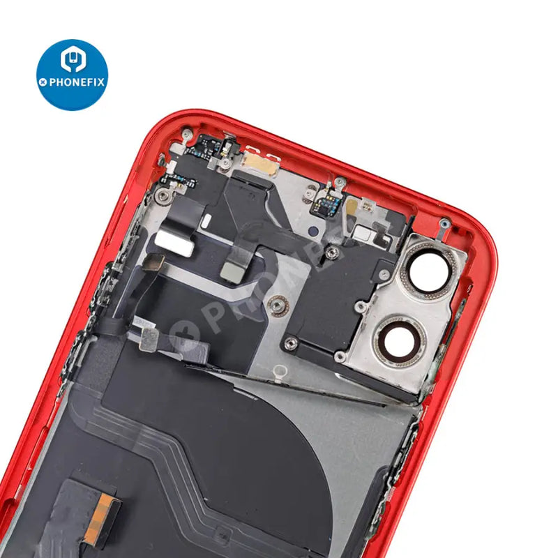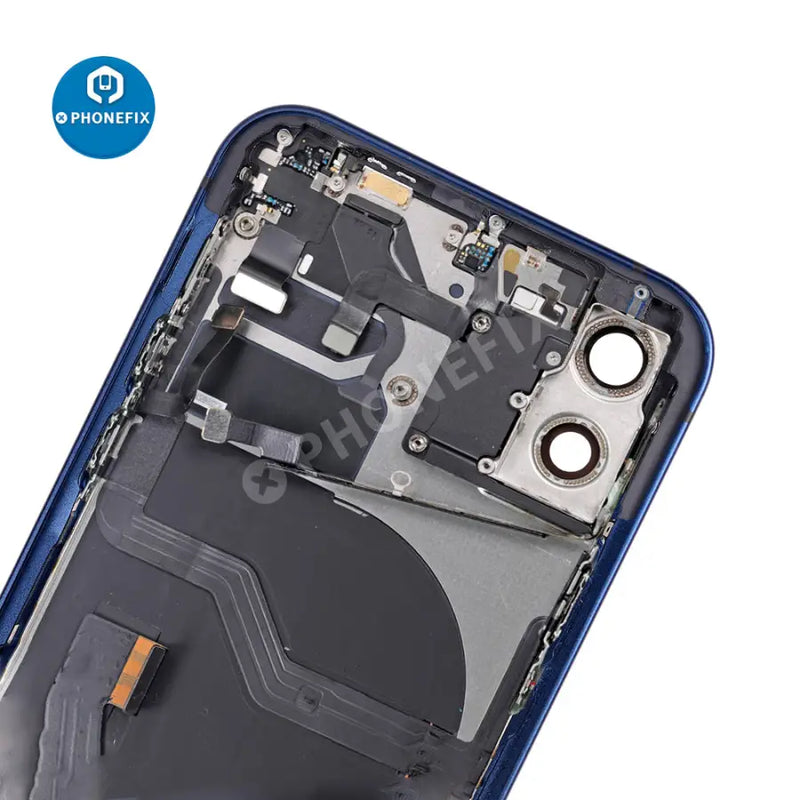 This iPhone 12 back housing assembly replacement does include middle frame, volume/power button flex cable, louder speaker,rear-facing camera retaining bracket, side keys retaining bracket, charger port assembly, and battery adhesive, please do not confuse it with the iPhone 12 rear housing that not include any parts.
