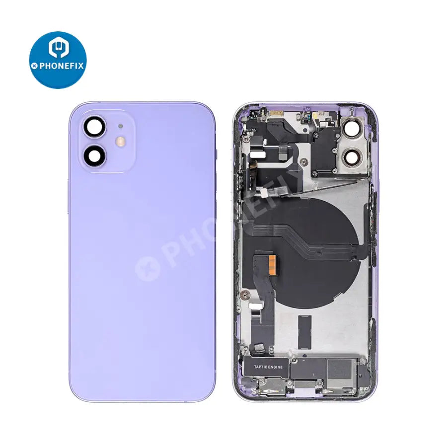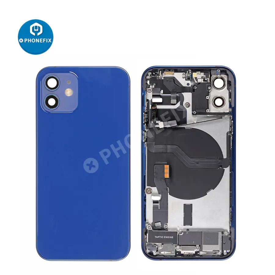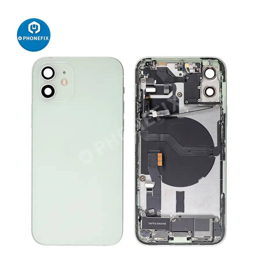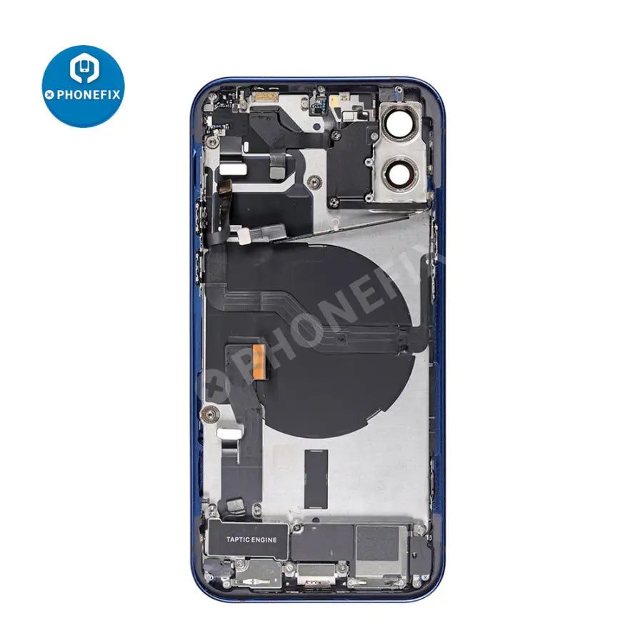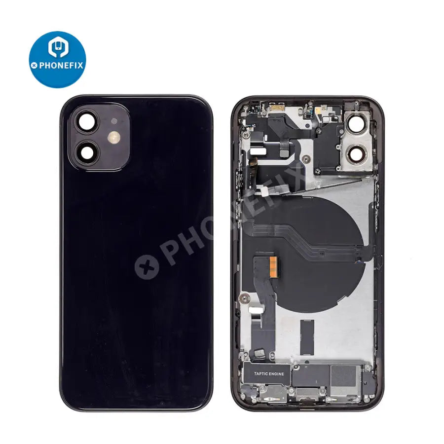 This iPhone 12 back housing assembly replacement does include middle frame, volume/power button flex cable, louder speaker,rear-facing camera retaining bracket, side keys retaining bracket, charger port assembly, and battery adhesive, please do not confuse it with the iPhone 12 rear housing that not include any parts.