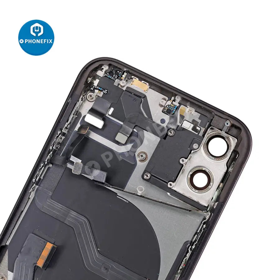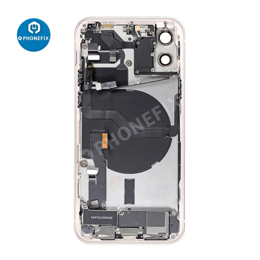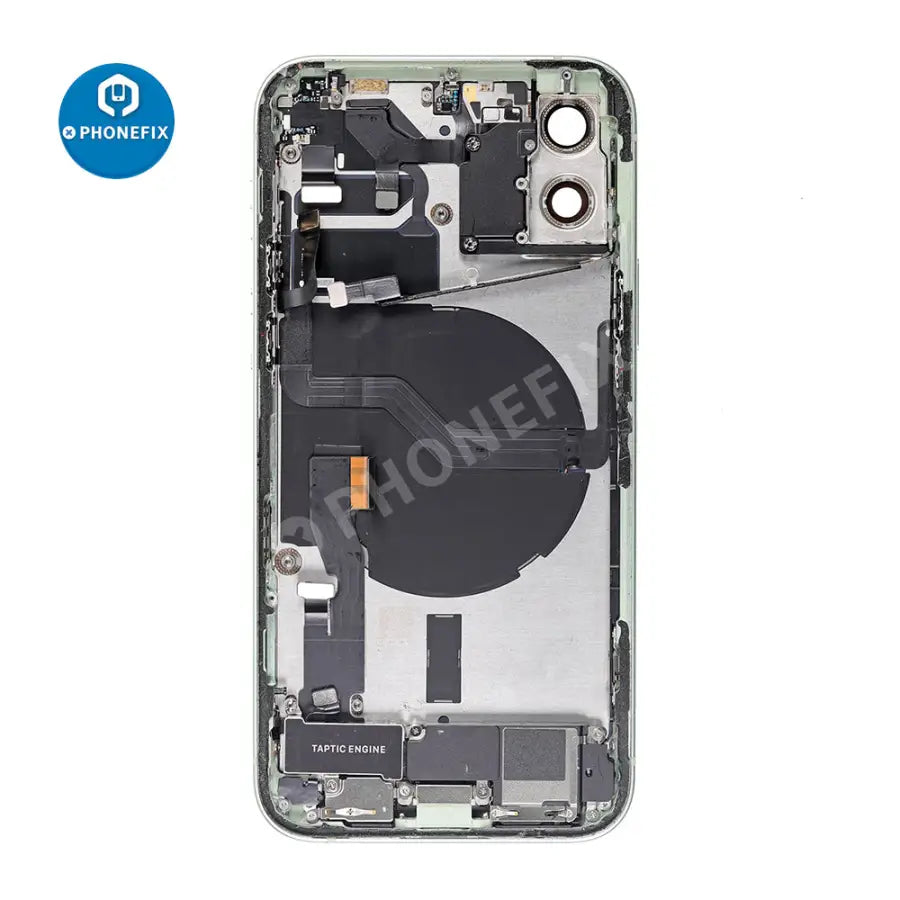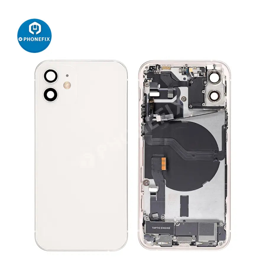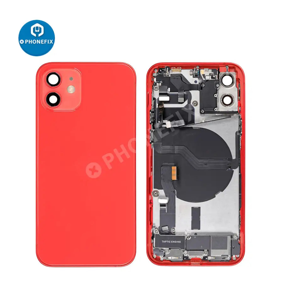 This iPhone 12 back housing assembly replacement does include middle frame, volume/power button flex cable, louder speaker,rear-facing camera retaining bracket, side keys retaining bracket, charger port assembly, and battery adhesive, please do not confuse it with the iPhone 12 rear housing that not include any parts.
