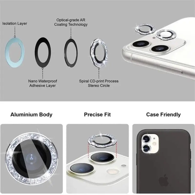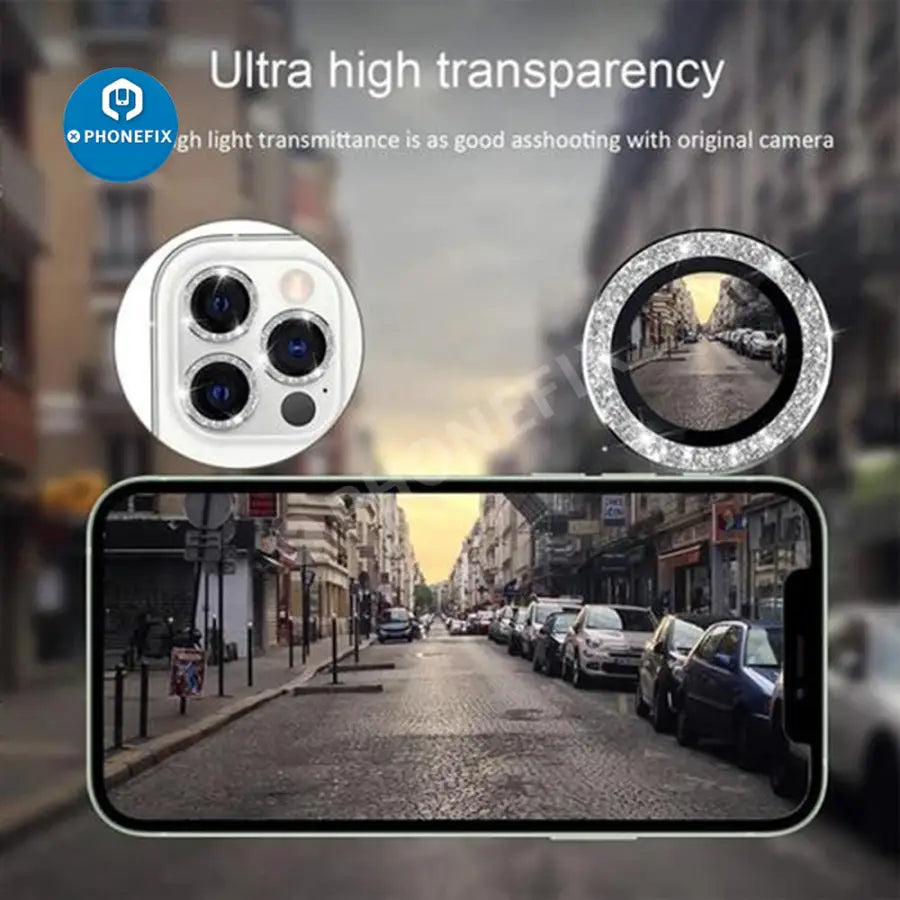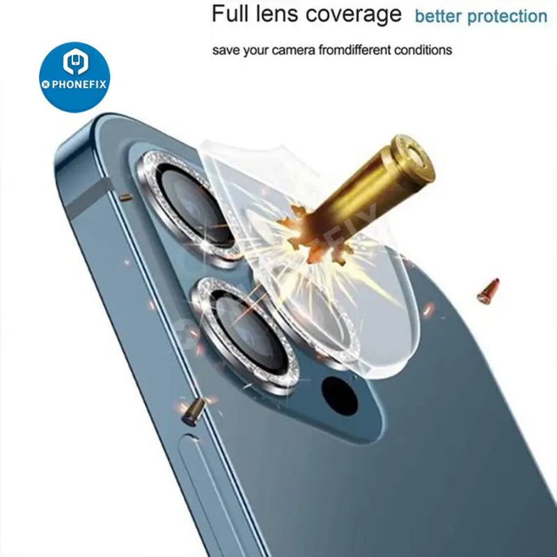 Bling Diamond Camera Lens Protector For iPhone 13 Pro Max Metal Ring Lens Tempered Glass Film For iPhone 11 Pro Max 12Mini Cover,Metal Ring Tempered Glass Full Cover Camera Lens Protectors For iPhone 11/iPhone 11 Pro/iPhone 11 Pro Max/iPhone 12/12 Pro/iPhone 12 Pro Max/iPhone 12 Mini/iPhone 13/iPhone 13 Pro/iPhone 13 Pro Max/iPhone 13 Mini