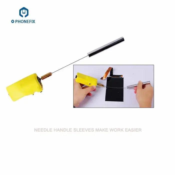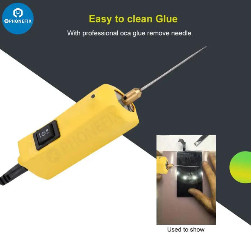 - The principle of OCA glue removal tool is to use the fine needle to roll up the OCA glue on the screen;