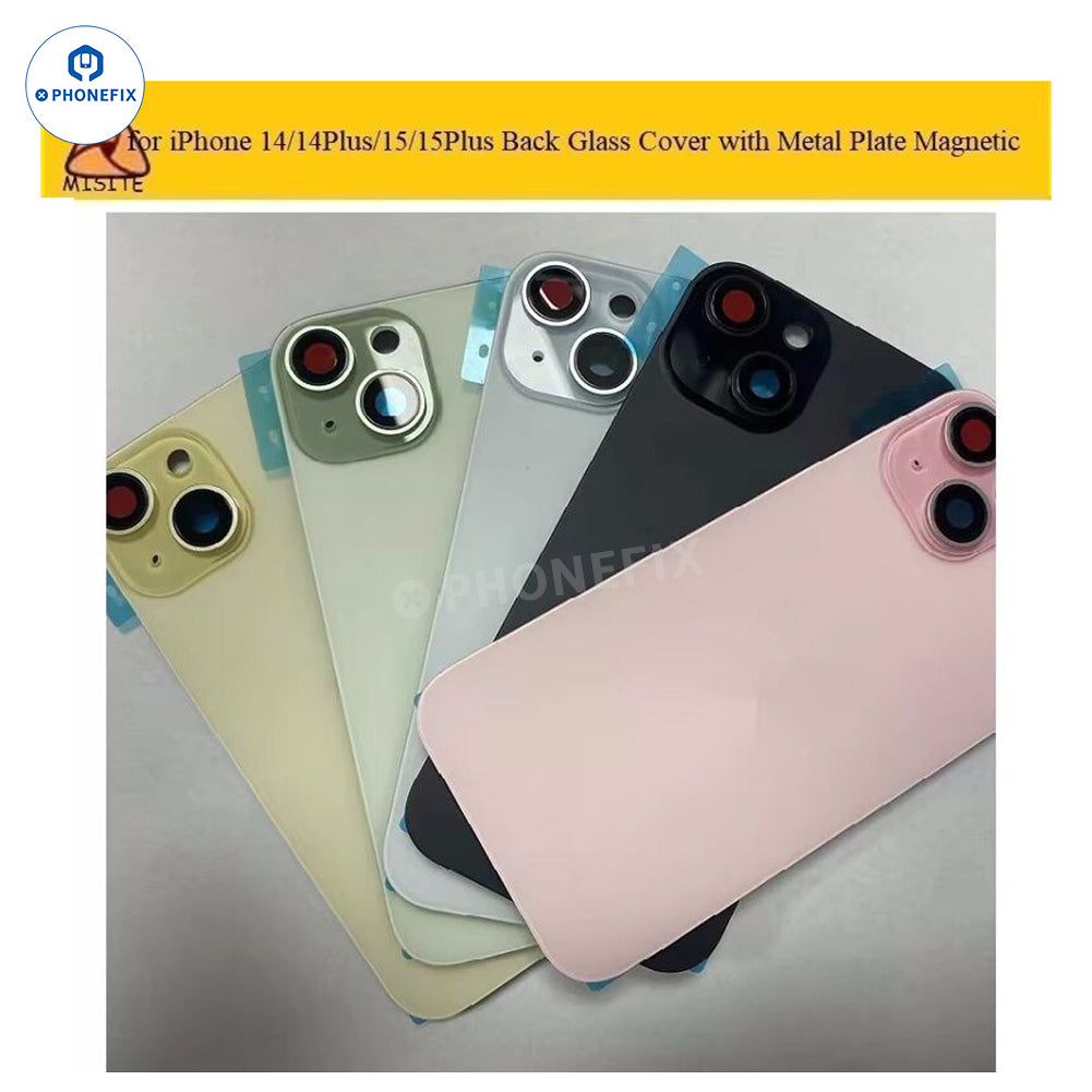Back glass panel with magsafe magnet and camera lens for iPhone 14/15/16/17 series. Replacement iPhone parts-iPhone 14/15/16 Pro Max back cover glass with magsafe magnet, pre-installed metal plate and well-soldered rear camera lens. Perfect for replacing scratched or broken iPhone back glass. Back glass with magsafe magnet for iPhone 14/14 Plus/15/15 Plus/15 Pro/15 Pro Max/16/16 Plus/16 Pro/16 Pro Max/17.