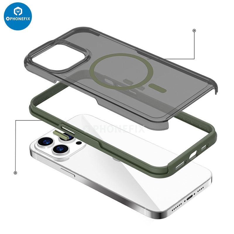 Full Cover Shockproof Airbag Magsafe Case For iPhone 15/15 Plus/15 Pro/15 Pro Max. Shockproof magnetic matte transparent case which is compatible with MagSafe. Ultra-slim, non-slip soft silicone airbag bumper for iPhone 15 series back cover protector.