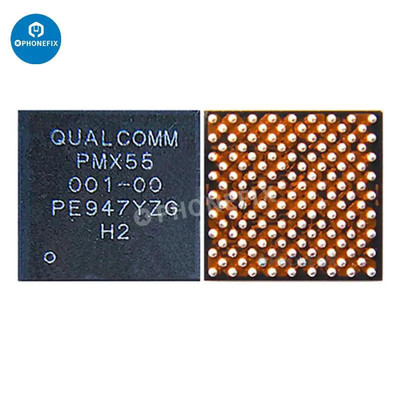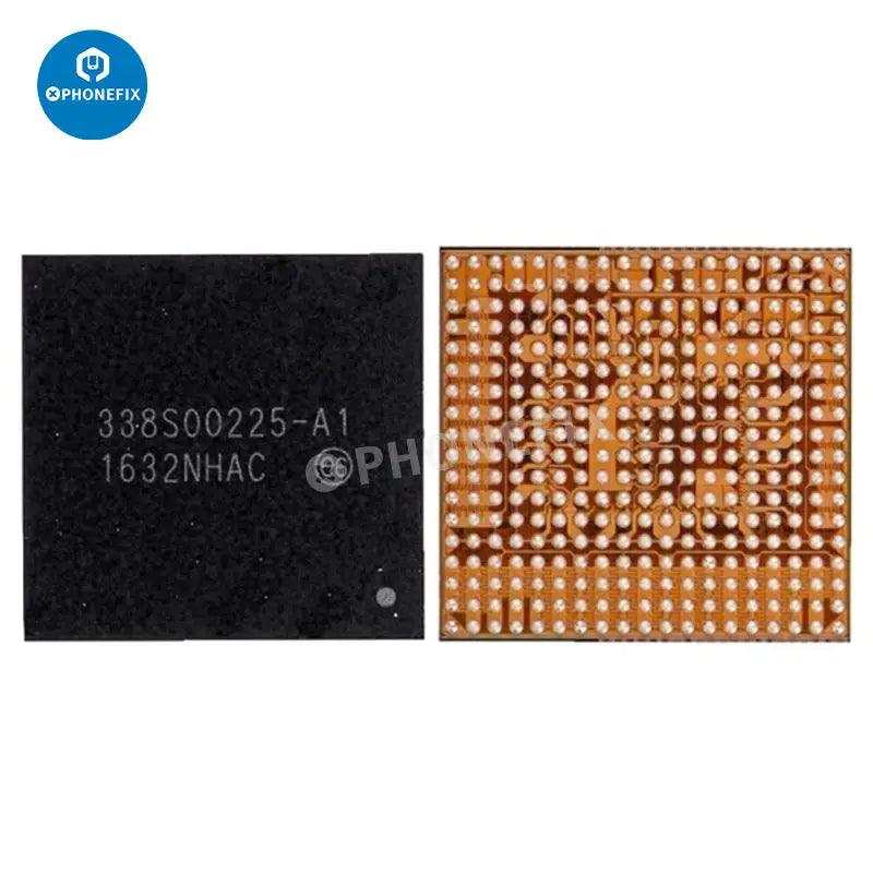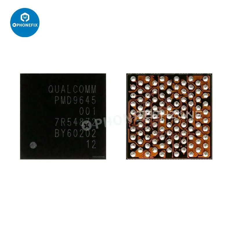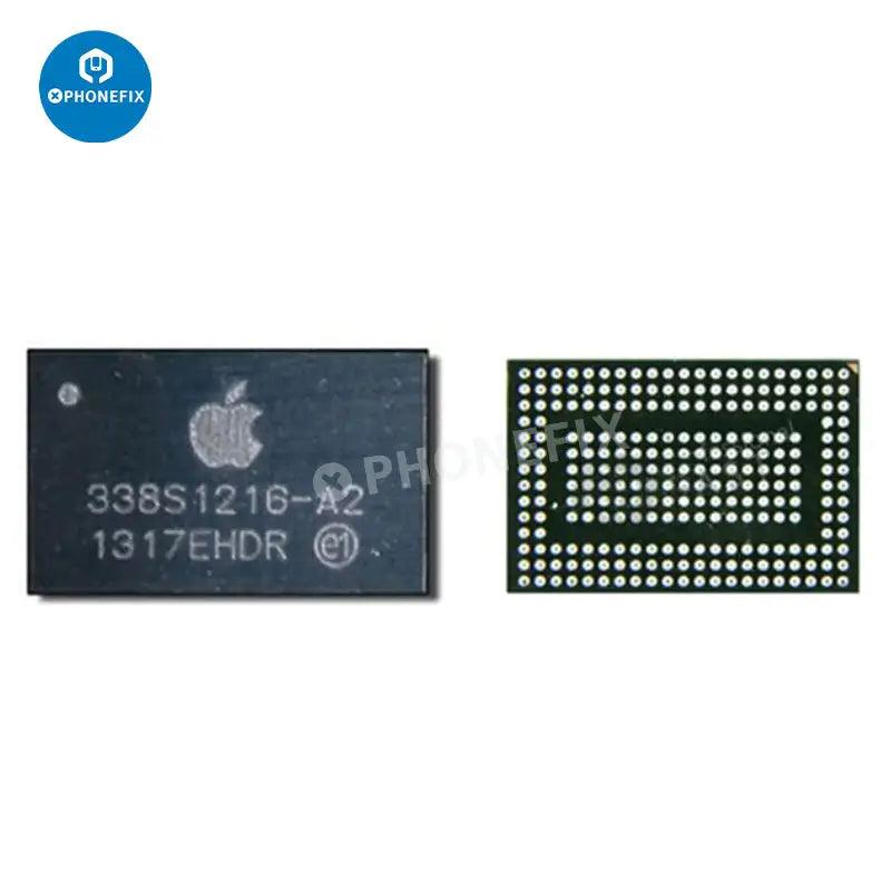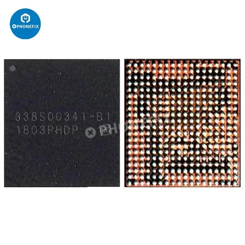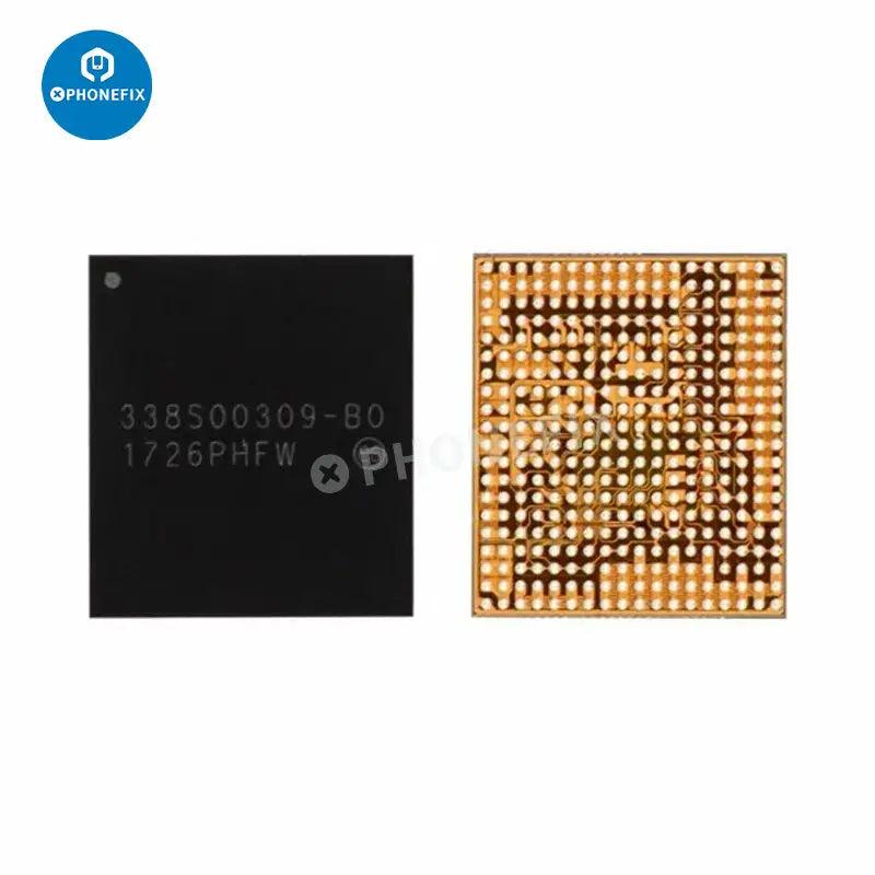 Apple main power IC baseband power chip for iPhone 5S-15 Pro Max motherboard repair. iPhone power management IC 338S01023 338S1251 338S00122 338S00225 338S00309 338S00341 338S00456 338S00383 343S00354 343S00437 343S00511 338S00942 343S00572. iPhone Qualcomm Intel baseband power IC PM8019 PMD9635 PMD9645 PMD9655 6826 6848 6829 6840 PMX55 PMX60 PMX65.