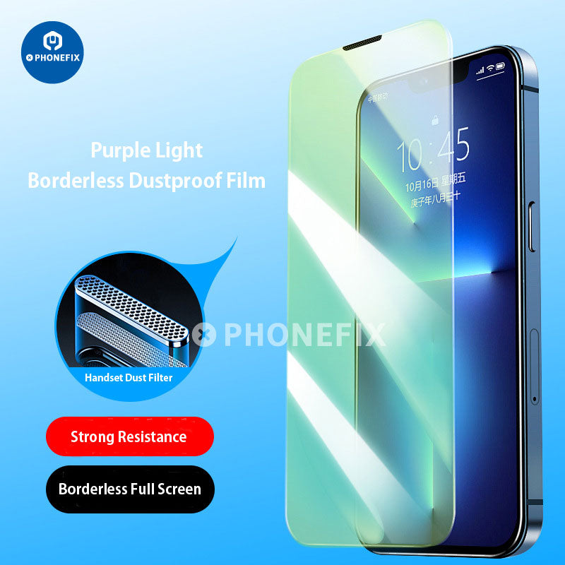 - Eye protection Purple Light: Eye protection purple light Tempered Film (full screen + no black border + earpiece dustproof).