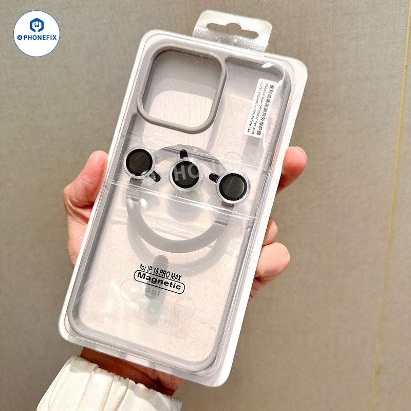 Precision hole transparent shockproof TPU full coverage mobile phone protective case for iPhone 6/6S/6P/6PS/7/8/SE/X/XS/XR/XSMAX/11/12/13/14/15/16 series. Magnetic frosted acrylic mobile phone case with lens Protection Film is suitable for iPhone11-16 Pro Max. Mobile phone case has the functions of shockproof, heat dissipation, wear-resistant, drop-resistant and anti-fingerprint.