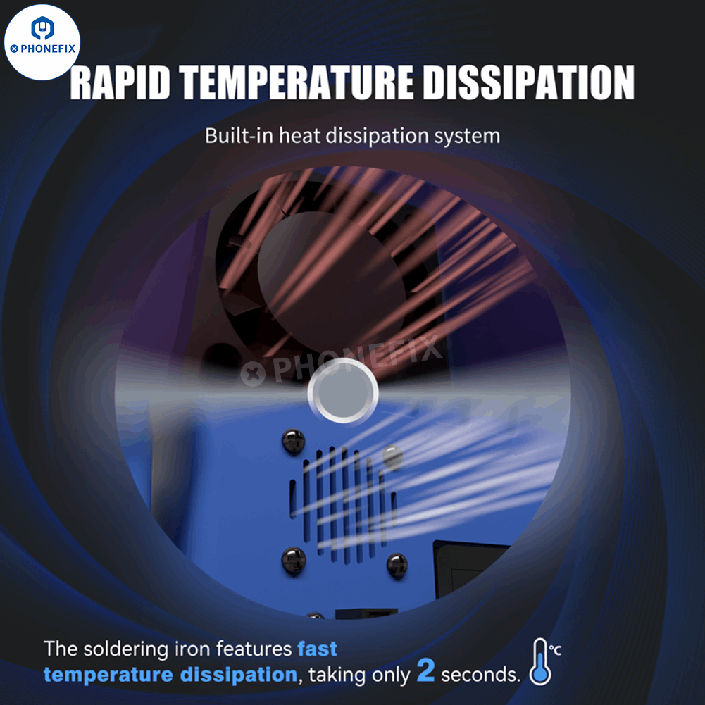 4. Fast heat dissipation, built-in heat dissipation system. The soldering iron dissipates heat quickly, only takes 2 seconds.