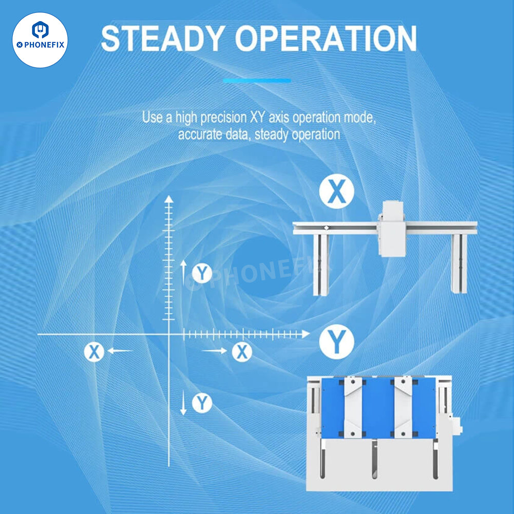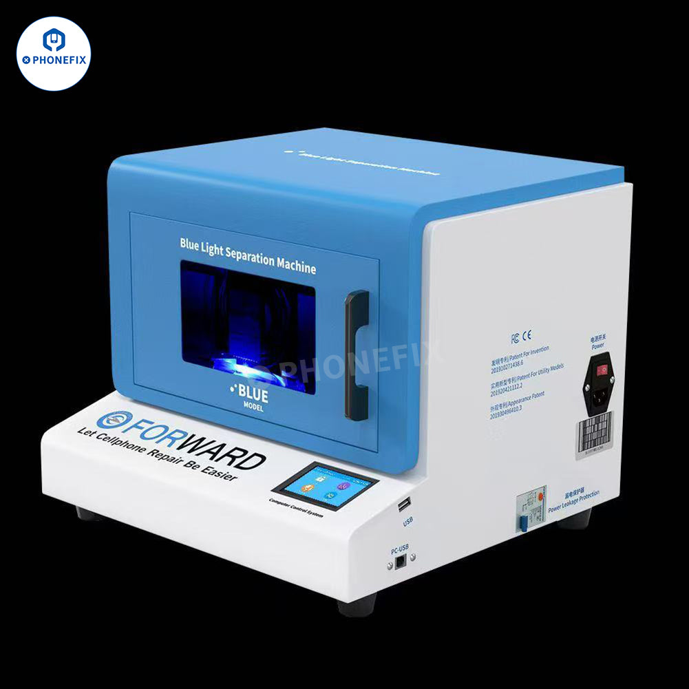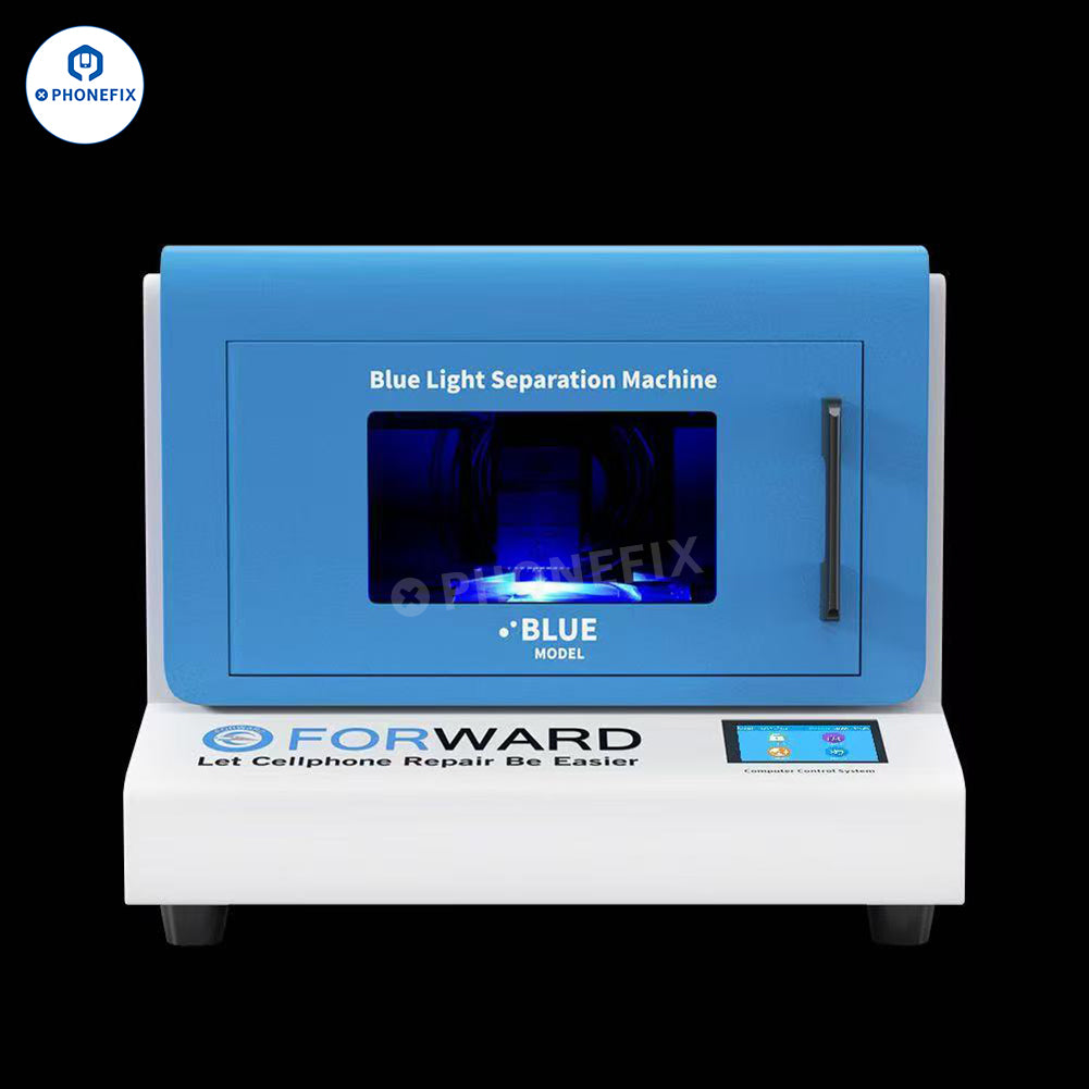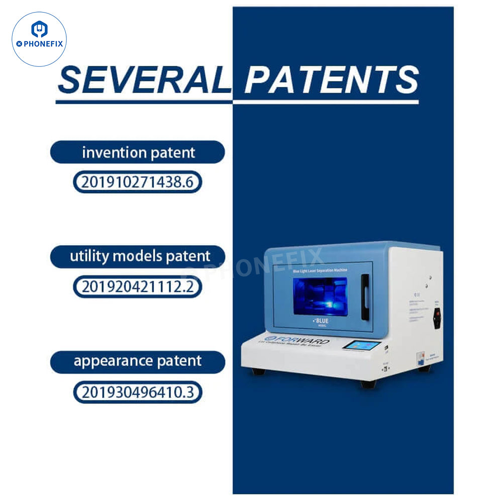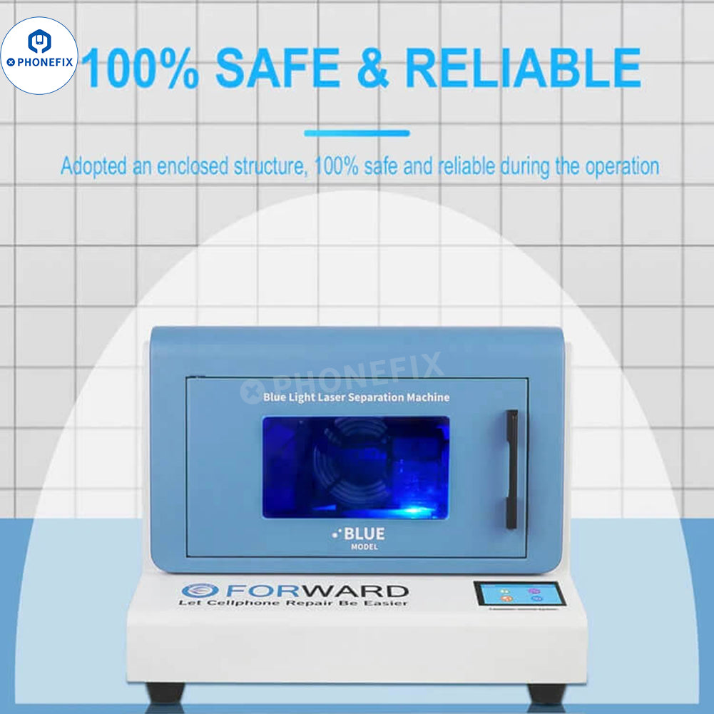 Forward Blue Laser Laser Machine with Air Purifier for Mobile Phone Repair. Such as iPhone back glass separation removal and mobile phone LCD screen frame bracket removal. No deviation, adopts center positioning structure, screen placement no deviation, easy to operate. Support iPhone, Huawei, OPPO, VIVO, Xiaomi, etc. Suitable for mobile phone back glass separation, no need to disassemble the phone, can also be used for cell phone middle frame or frame separation.