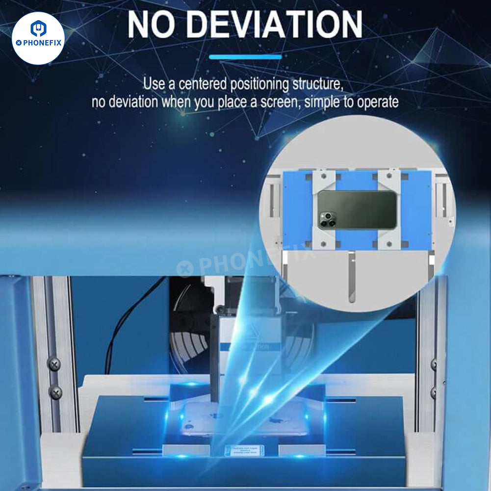 2. Use a centered positioning structure, no deviation when you place a screen, simple to operate. Adopted a closed structure, 100% safe during the operation.