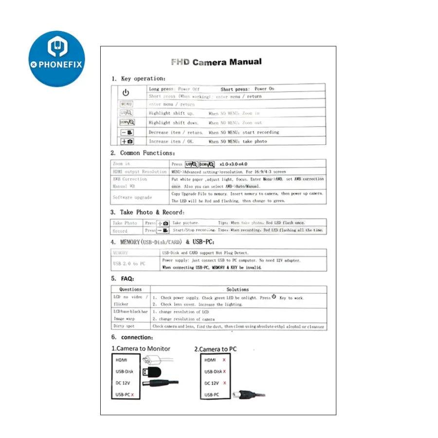 Full HD 2MP HDMI USB Camera 2000TVLine 1/2.8" 30FPS Industry Microscope Camera For Phone PCB Lap IC CPU Soldering Repairing