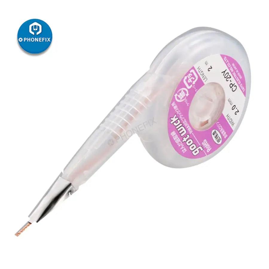 GOOT desoldering wick dispenser suction tin with stainless steel mouth for precision PCBs RMA tin remove, Goot CP-15Y\20Y\25Y soldering wire dispenser for mobile phone repair.