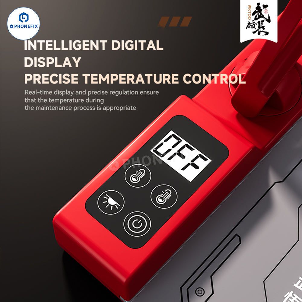 WUKONG Graphene Heating Pad adopts a dual-lamp design and has a reserved mobile phone camera interface. It can evenly heat the mobile phone screen and back cover, safely and quickly heat the cell phone LCD screen glue and back cover glue, achieve efficient separation and disassembly of the mobile phone screen and back cover, and improve the efficiency of mobile phone repair.