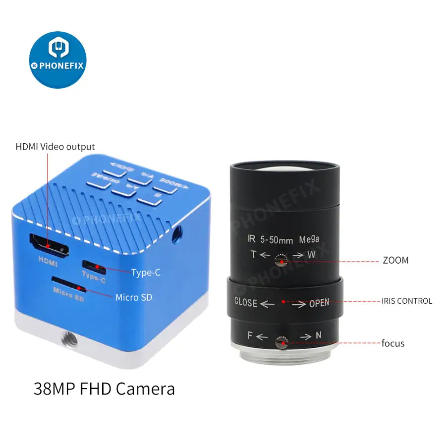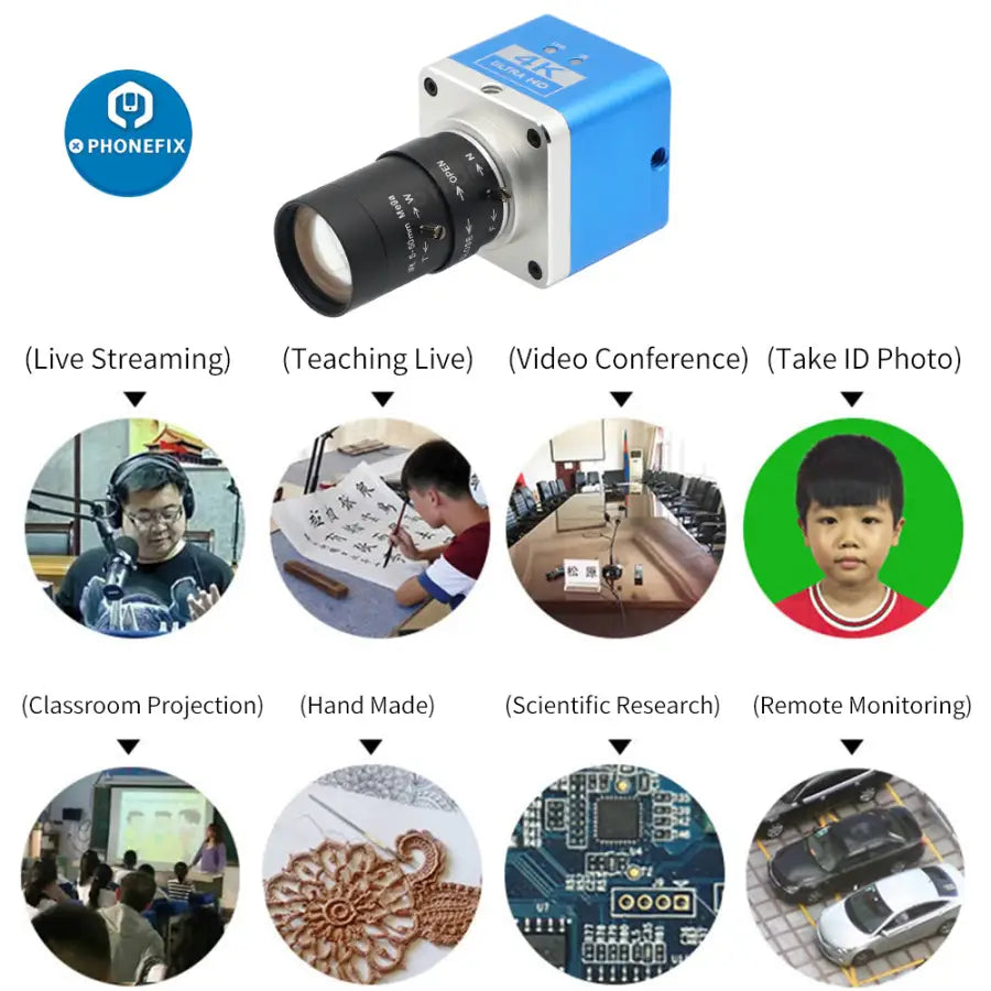 HDMI 4K Ultra HD 2160P USB CMOS industrial Live Digital Camera, with Sony IMX377 Sensor, CCD digital detector, Equipped with Varifocal 5-50mm C /CS Mount 1/3" F1.6 Lens Manual IRIS Zoom Focus CCTV Lens.