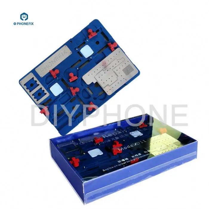 High Temperature Motherboard Cooling Soldering / Desoldering Platform for iPhone X BGA Reballing Positioning Repair PlatformDescription : iPhone X Motherboard Test fixture is high quality multi-functional iPhone PCB soldering / desoldering platform, it is available for different sockets for iPhone CPU NAND chips positioning, disassembly, soldering, etc. The cooling high temperature resistant will offer the best assistance to professional iPhone motherboard fix
