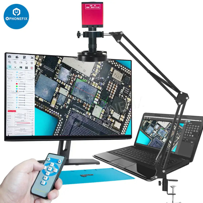 48MP 4K 1080P Video HDMI USB Microscope Camera 1-130X Zoom C Mount Lens 38cm Cantilever Stand 56 LED Light For Phone PCB Repair Soldering Digital Image Acquisition For Monocular Trinocular Soldering Microscopio Digital Images Video Teaching Live Streaming Phone Repair Tool.