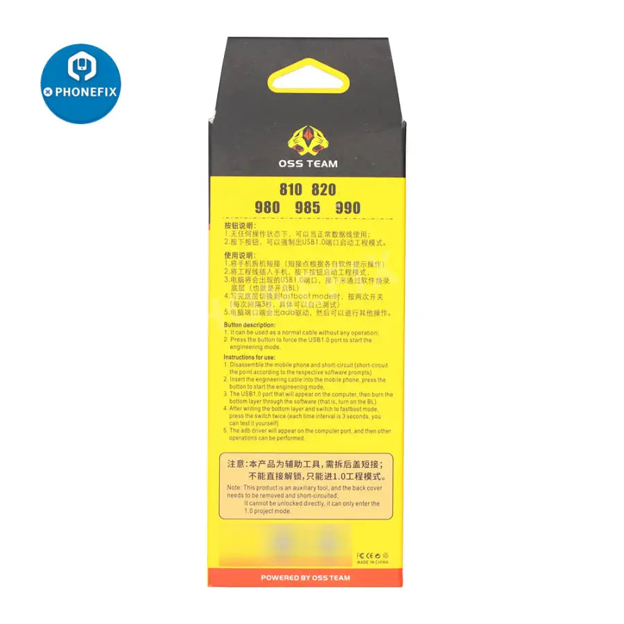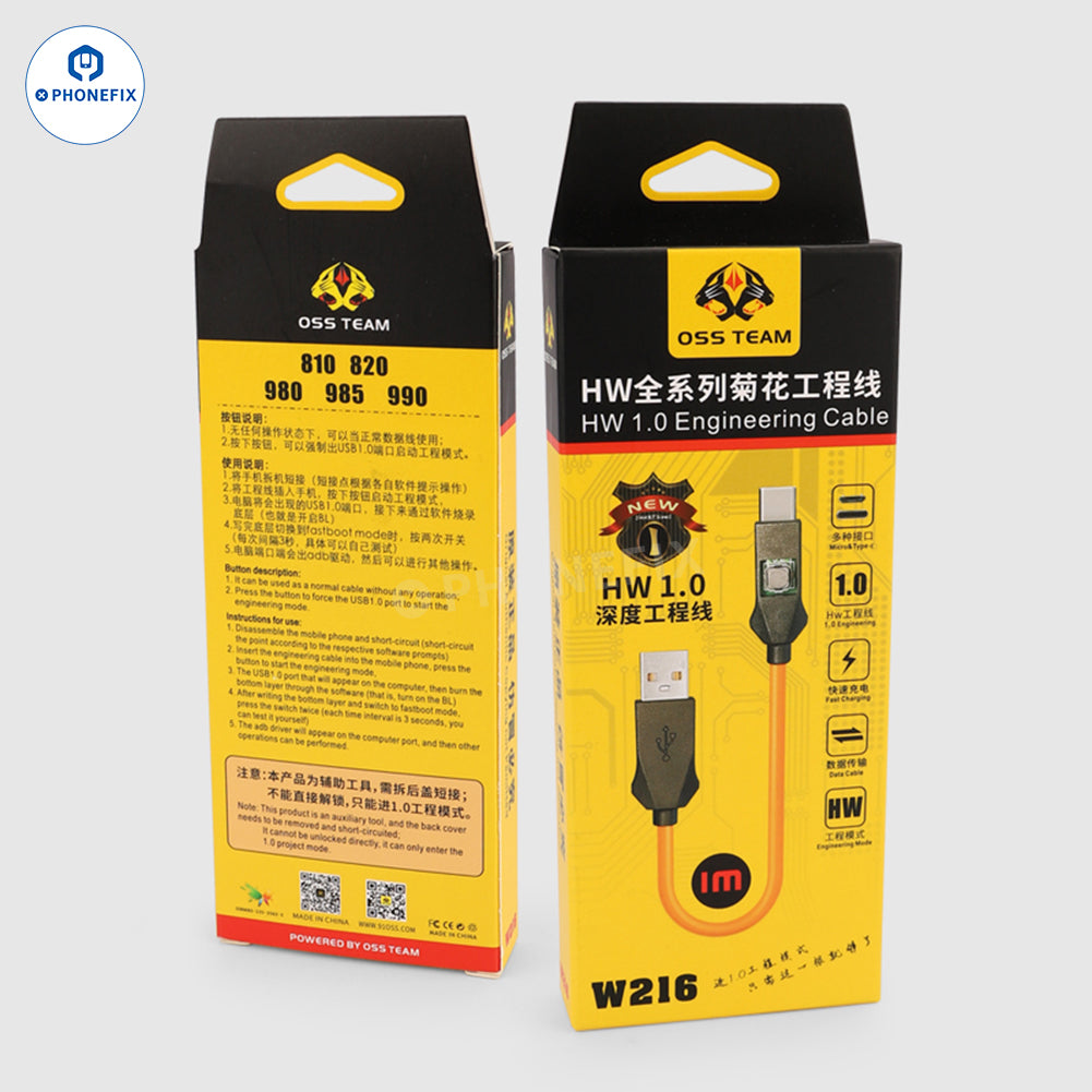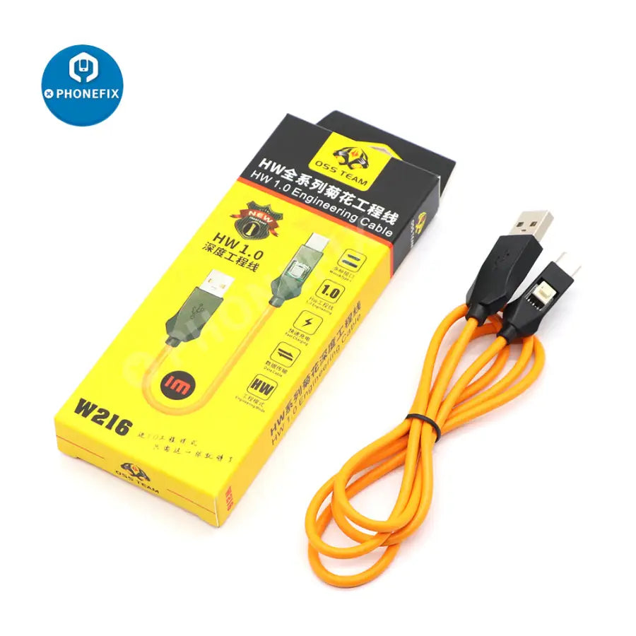 OSS W216 HW Chrysanthemum USB 1.0 Engineering Cable solves Huawei mobile phones without USB 1.0 port after disassembling and short circuit. OSS W216 engineering cable with multi-port (Micro and Type-C), engineering mode, fast charging, and data transfer for entering Huawei USB 1.0 engineering mode, applicable to all mobile phones with micro and typeC interfaces for flashing, restoring recovery and auxiliary unlocking.