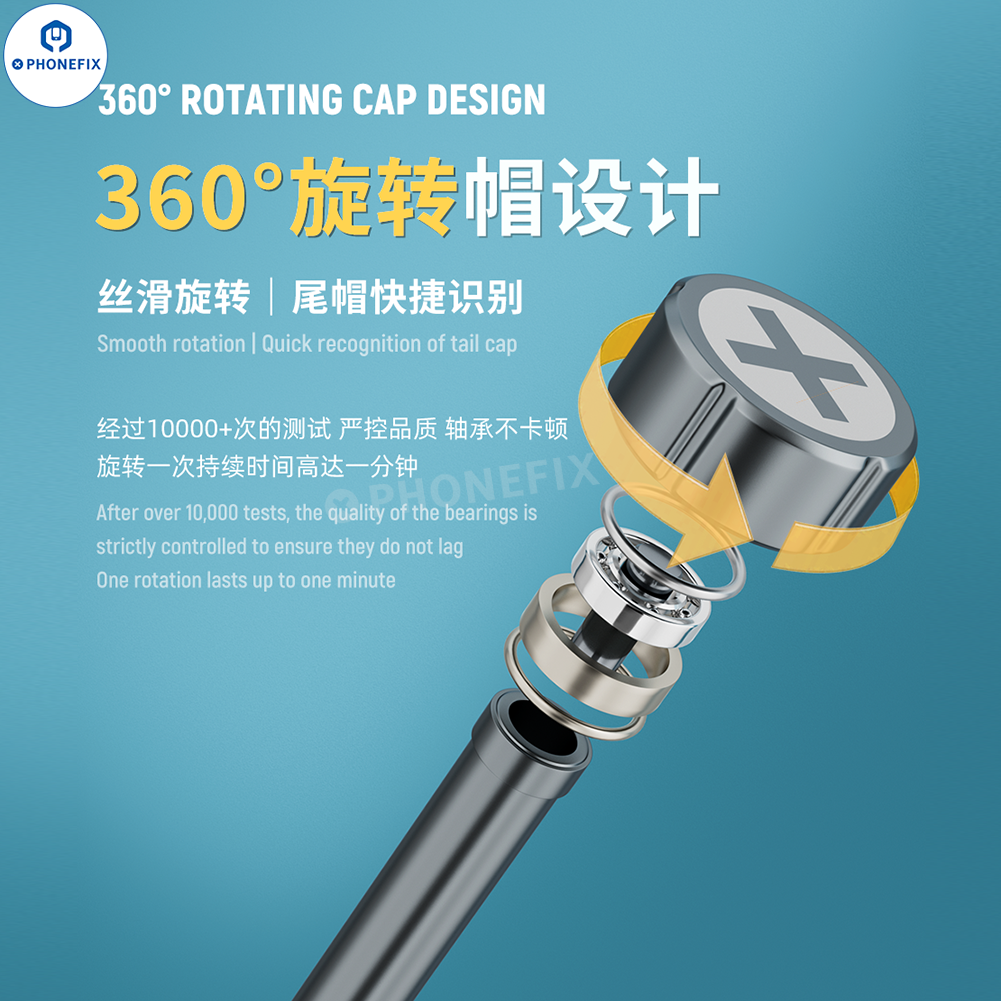 3. 360° rotating cover design, smooth rotation. Quick identification of tail cap, after more than 10,000 tests, the bearing quality is strictly controlled to ensure that there will be no jamming. One rotation can last up to one minute.