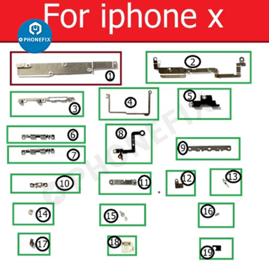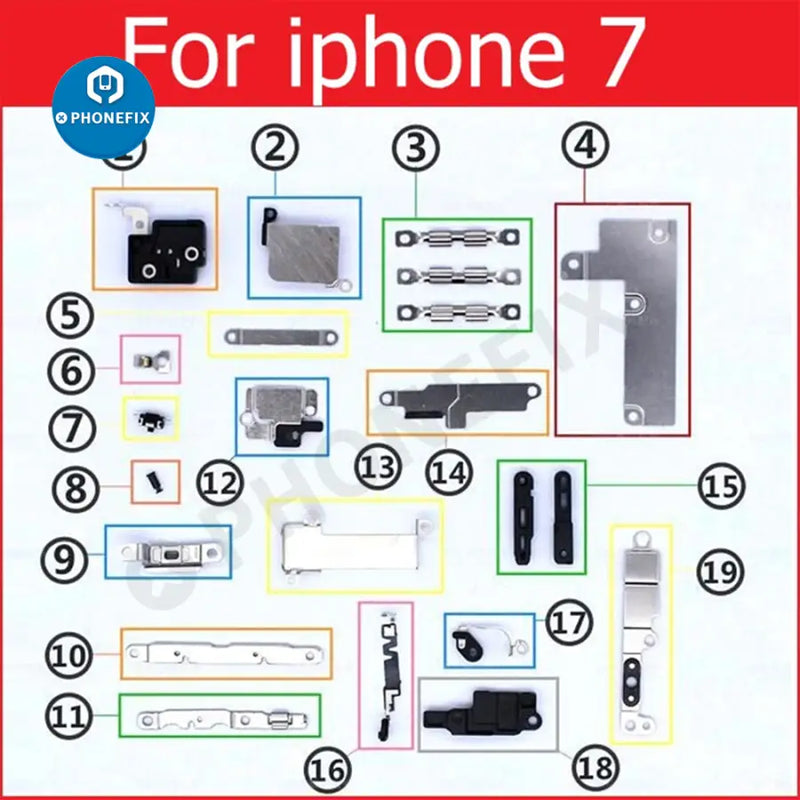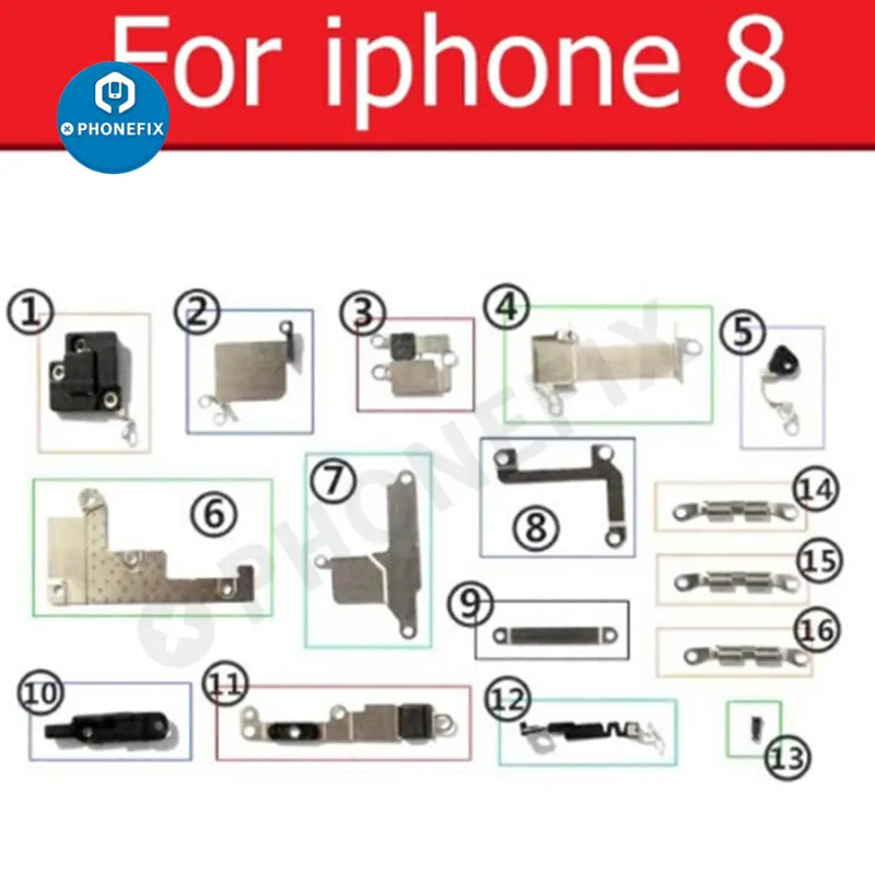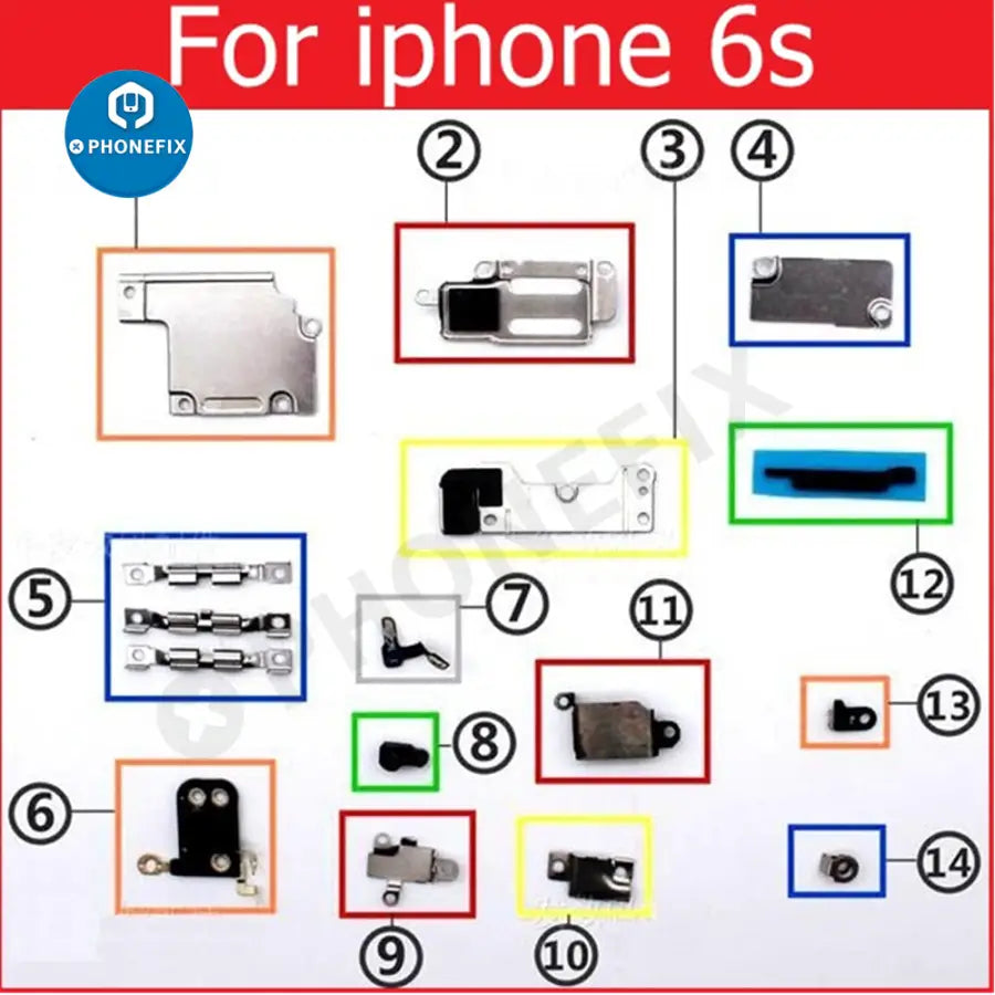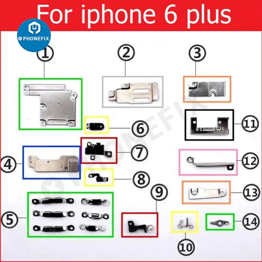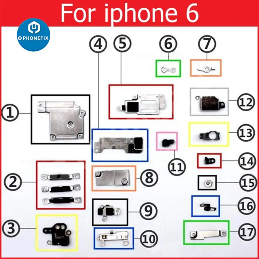 Inner small parts metal bracket kit for iPhone 6/7/8/X/11/12/13/141/5/16/17 Pro Max, complete set small metal set shield plate parts for iPhone 6-17 Pro max, full set small metal internal bracket, Replacement parts for damaged or unusable iPhone shield plate.