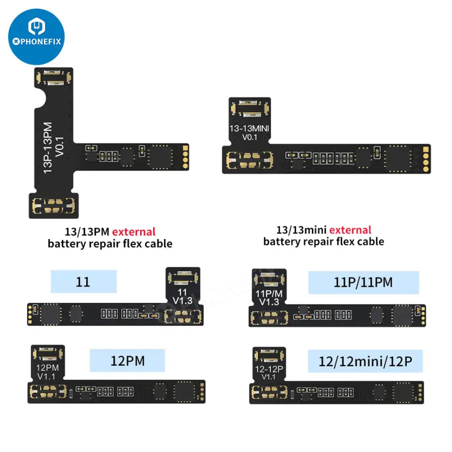 8. JC battery repair external flex cable for iPhone 11/11Pro/11 Pro Max/12/12 Mini/12 Pro/12 Pro Max/13/13 Mini/13 Pro/13 Pro Max/14/14 Plus/14 Pro/14 Pro Max/15/15 Plus/15 Pro/15 Pro Max/SE3 battery health modification, non-genuine battery error fixed.