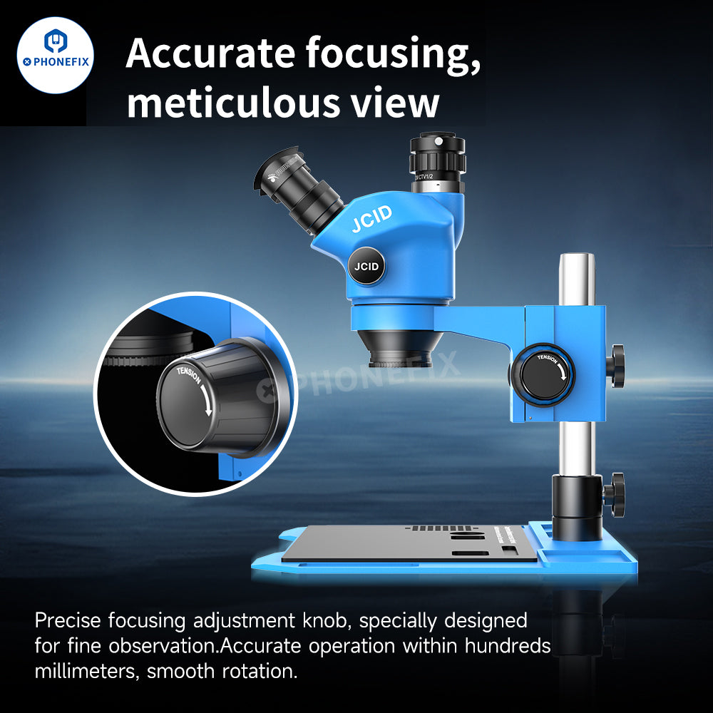 1. JCID-M3750-A & JCID-M2750-A Zoom Trinocular Stereo Microscope is equipped with binocular and trinocular observation tubes for smart phone, tablet and laptop repairing, micro-soldering tools.