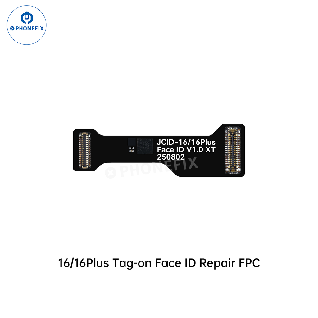 JCID Non-removal Face ID Repair FPC flex cable Fixes iPhone X-16 PRO MAX Face ID issues without soldering. JCID Tag-on Face ID repair FPC cable used with Max Dot Matrix Face ID activation read write board and V1SE/V1S Pro programmer to fix iPhone X/11/12/13/14/15/16 Pro Max Face ID problems. Solder-free, non-disassembly.