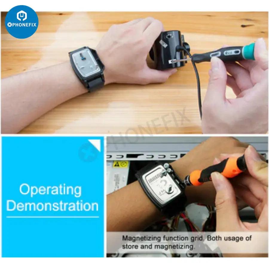 Keep screws and small tools at hand with the JM-X4 Components Absorption Bracelet. Magnetic Wristband for Tool Organization | JM-X4 Components Absorption Bracelet. JM-X4 magnetic adsorption bracelet for screws metal components. Magnetic Super Wrist Band Wristband for Holding mobile phone repair small parts screws, nail, bolts, bits, nuts at cell phone repair work.