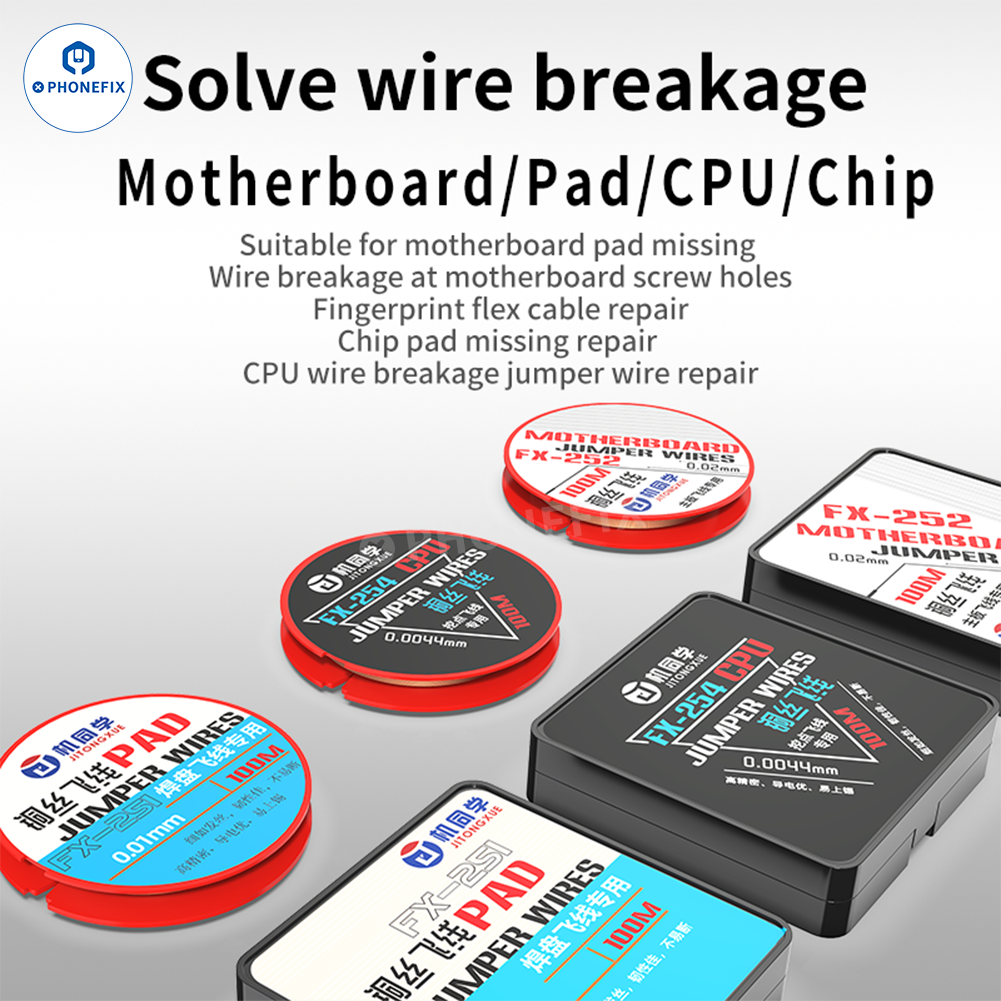 JTX FX-251 FX-252 FX-254 Copper Wire 0.01mm 0.02mm 0.0044mm Jumper Wires for mobile phone motherboard CPU IC pad soldering and repair, solving wire breakage on motherboard/pad/cpu/chip. Suitable for phone/iPhone/tablet motherboard CPU repair.